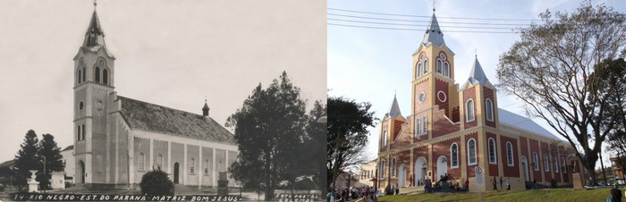 Em 1859 esta Capela foi transladada para a margem direita do rio Negro e erigida no local, hoje esquina da Travessa Bom Jesus com Rua Dr. Vicente Machado, na atual Praça da Matriz.