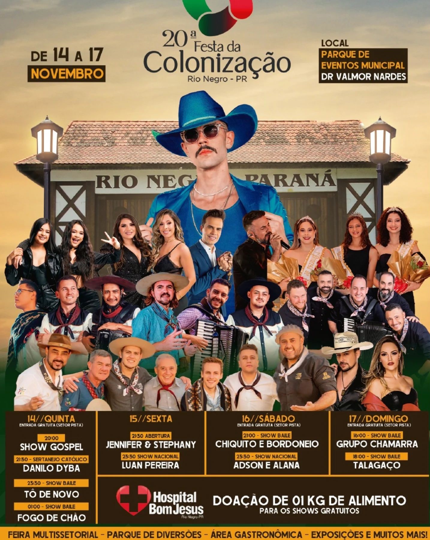 No próximo dia 15 de novembro o município de Rio Negro completará 154 anos de emancipação política. Para comemorar será realizada a tradicional Festa da Colonização com grandes atrações.