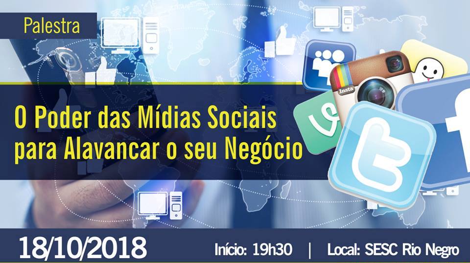 Atenta as necessidades do mercado e principalmente de seus associados, a Associação Comercial e Industrial de Rio Negro (ACIRN) em parceria com o Sebrae/PR e o Sesc de Rio Negro, vai promover de forma gratuita no dia 18, próxima quinta-feira, a palestra ‘O Poder das Mídias Sociais para Alavancar o seu Negócio’.