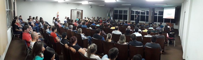 Cerca de 150 pessoas assistiram o palestrante, professor Adriano Kelina, explicar com muita desenvoltura como usar ferramentas de Tecnologia de Informação (TI) e sua integração do tempo, compromissos e urgências.