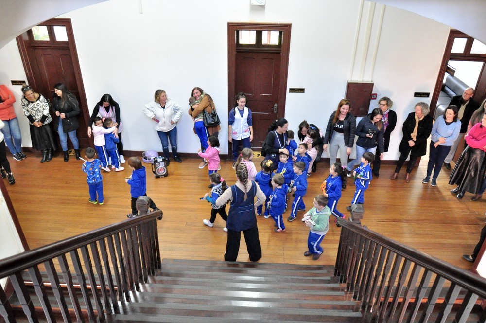 Para homenagear as servidoras mães da Prefeitura de Rio Negro, nesta sexta-feira os alunos das professoras Silvane e Cristiane do pré 1 da Escola Municipal Celso Catalan realizaram uma emocionante apresentação nas escadarias do histórico prédio.