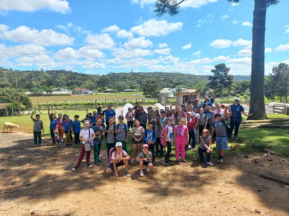 Na última quarta-feira (30), a Escola Rural Municipal Paulino Valério recebeu os alunos do terceiro ano das escolas municipais Olavo Bilac e Eraldo Germano Plautz para a realização em conjunto do projeto “Turismo Rural na Escola”.