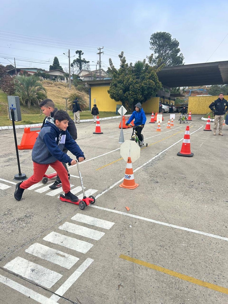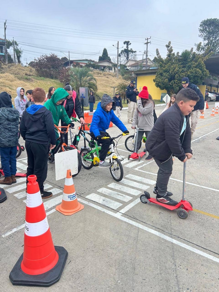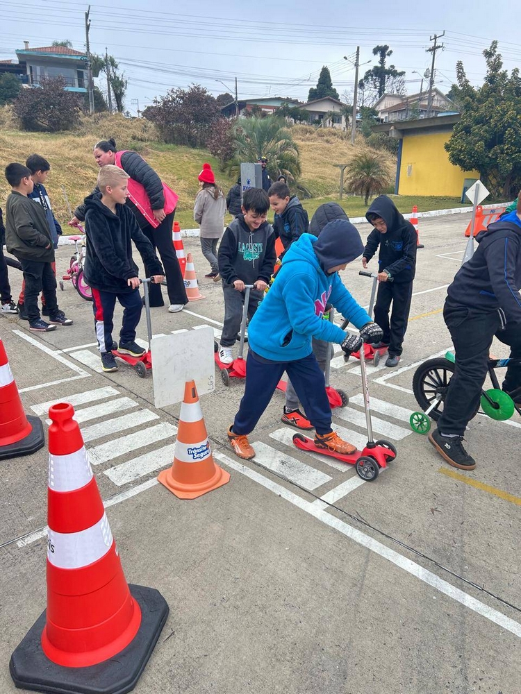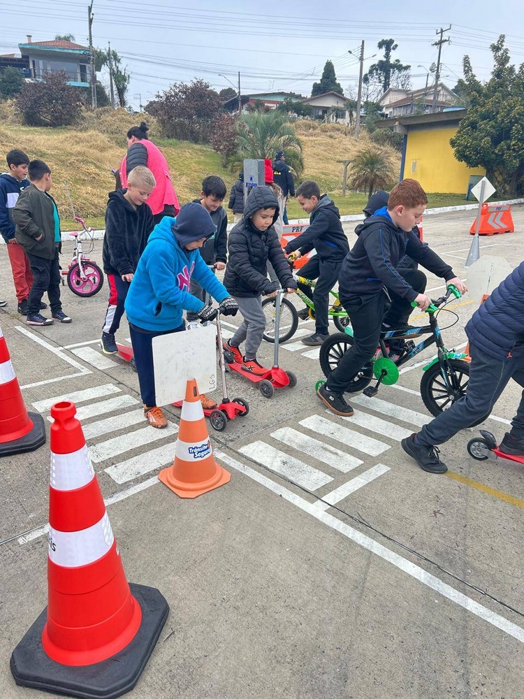 Do lado de fora, há uma mini pista para as crianças e jogos educativos. Portanto, a ação envolve muita diversão e aprendizagem.