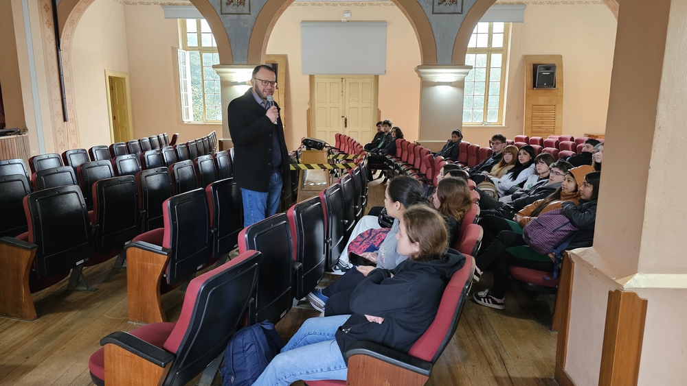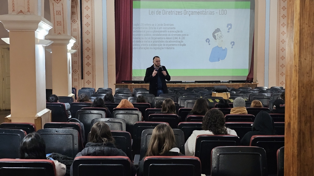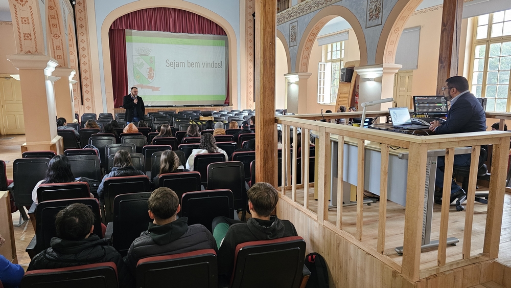 O prefeito Alessandro Cristian von Linsingen recepcionou os alunos no Cine Teatro Antônio Cândido do Amaral, onde fez uma apresentação sobre como funciona o Poder Executivo Municipal.