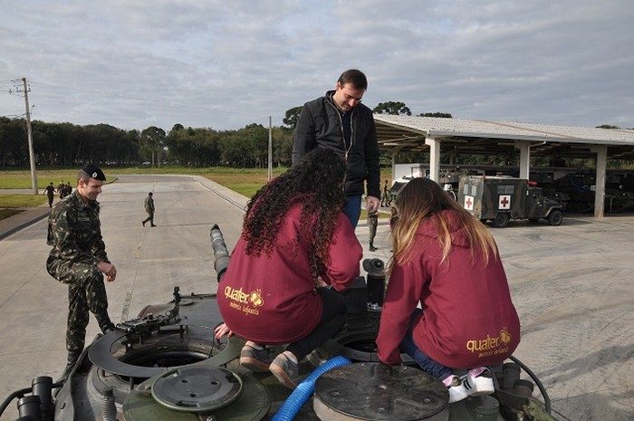 O 5º Regimento de Carros de Combate recebeu no dia 29 de julho, a visita de 18 alunos do Projeto Pescar, sediado na cidade de Rio Negrinho-SC. Os alunos tiveram a oportunidade de conhecer a rotina do aquartelamento, as novas instalações, conheceram um pouco sobre a história do regimento e os símbolos nacionais, e tiveram a oportunidade de ver o funcionamento de um Carro de Combate Leopard 1A5 BR.