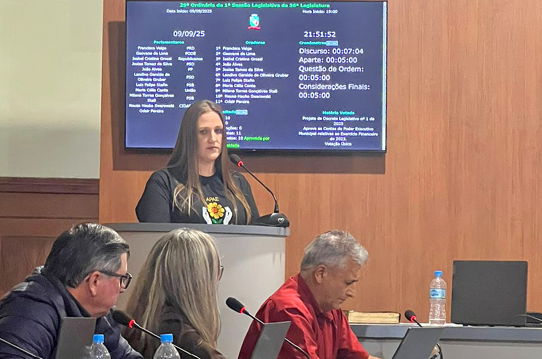 A 29ª Sessão Ordinária da Câmara Municipal de Rio Negro, realizada no dia 9 de setembro, foi marcada por momentos de forte impacto social durante a Tribuna Livre, quando a diretora da APAE, Sílvia de Paula Stange, e a mãe atípica Ana Paula Sá Menezes usaram o espaço para apresentar a realidade da instituição e a importância do trabalho desenvolvido.