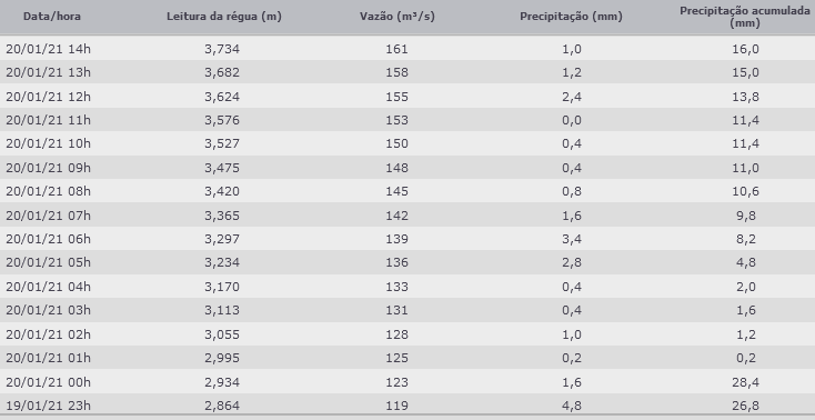 O nÃvel do rio Negro, principal fonte de abastecimento de água de Mafra e de Rio Negro, está subindo e chegou a 3,734 metros à s 14h desta quarta-feira. O nÃvel considerado crÃtico e preocupante para enchentes é de 7,00 metros.