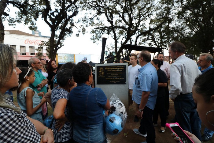 Na inauguração o único condutor da Máquina Niveladora, o saudoso servidor municipal Henrique Lazzarine, foi homenageado com a entrega dos votos de louvor a seus familiares.