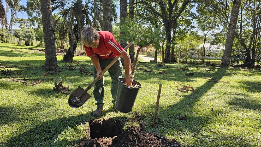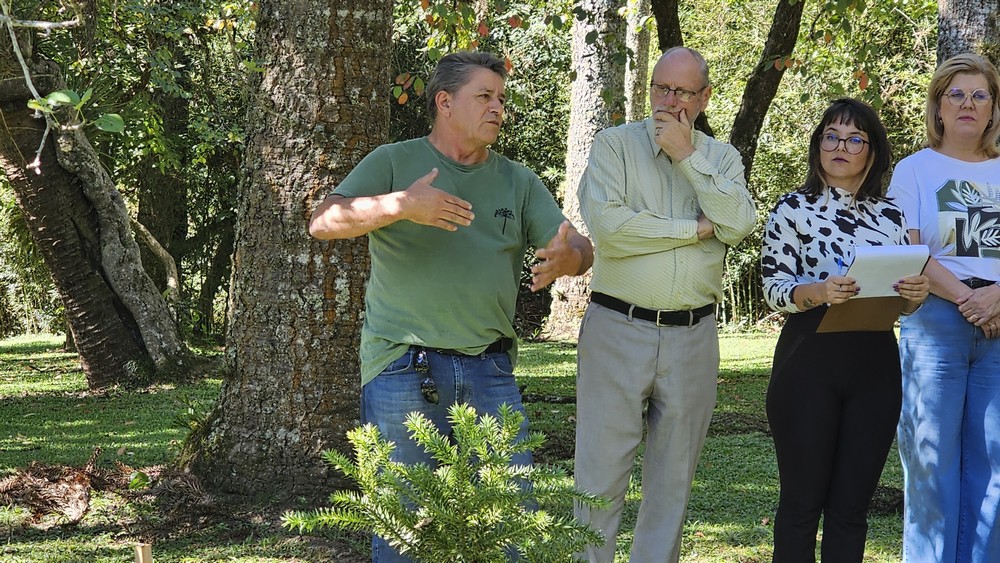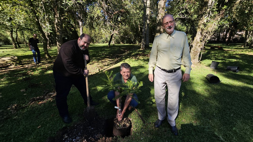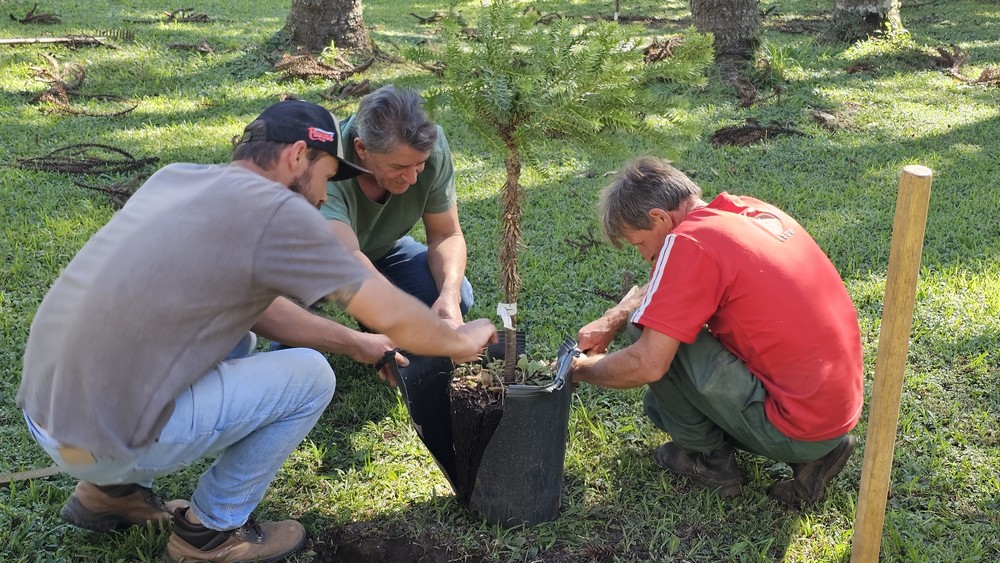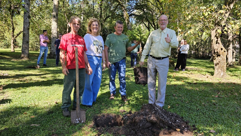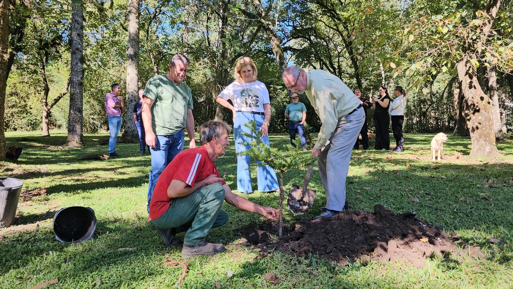 Com a presença da equipe do meio ambiente, servidores da Prefeitura, autoridades, apoiadores e população em geral, houve o plantio de mais exemplares de araucárias enxertadas na área do pomar do Parque Ecoturístico Municipal São Luís de Tolosa (Parque do Seminário).