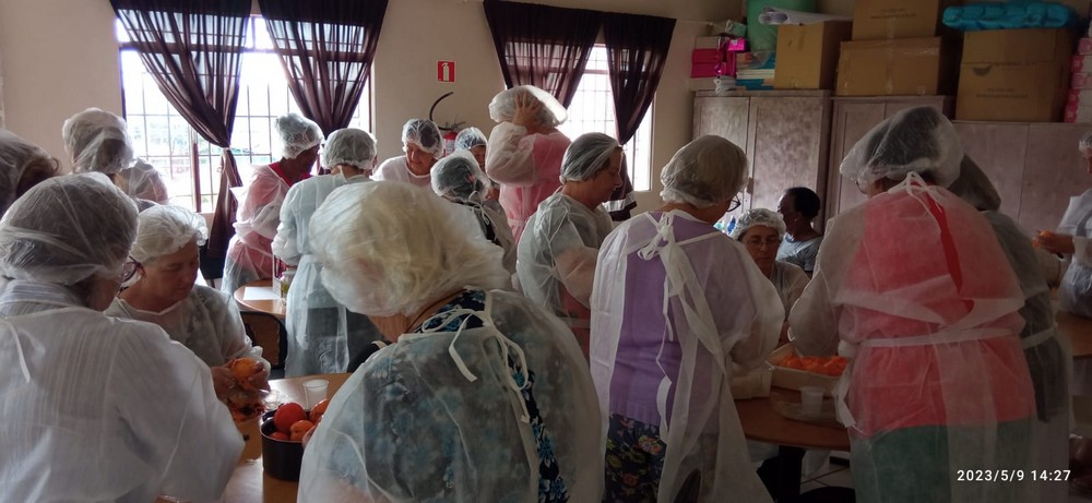 Durante a atividade as participantes foram orientadas na organização da divisão de tarefas, para a preparação e cozimento da fruta. Na mesma oportunidade, as integrantes do grupo foram convidadas a levarem uma receita para confecção de um Livro de Receitas.