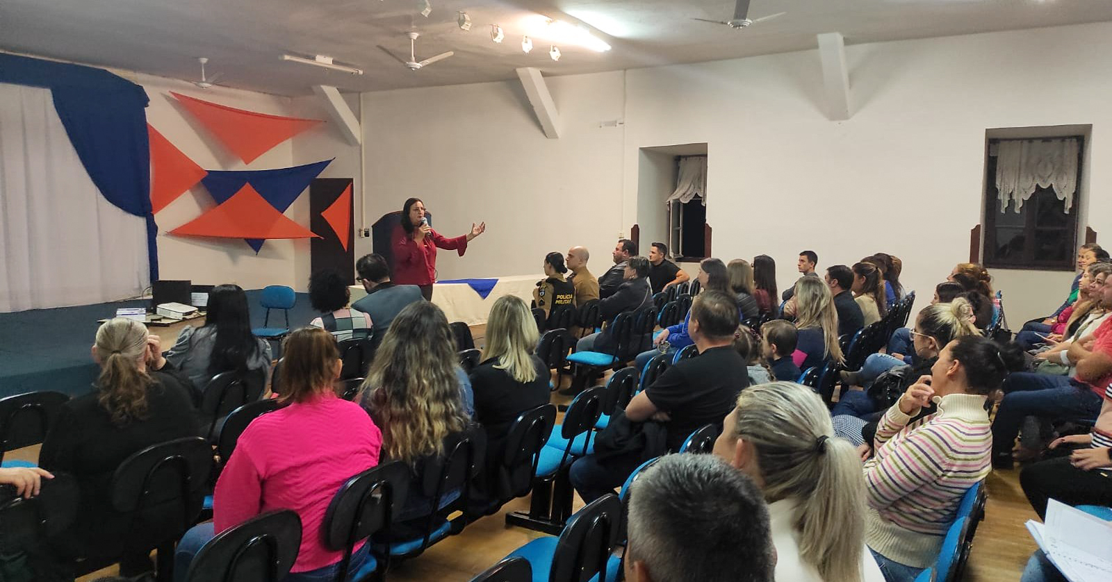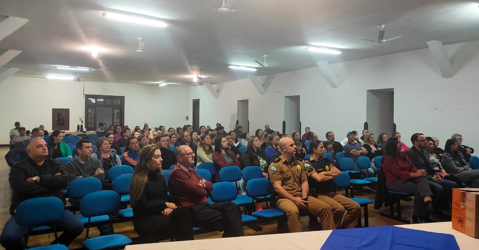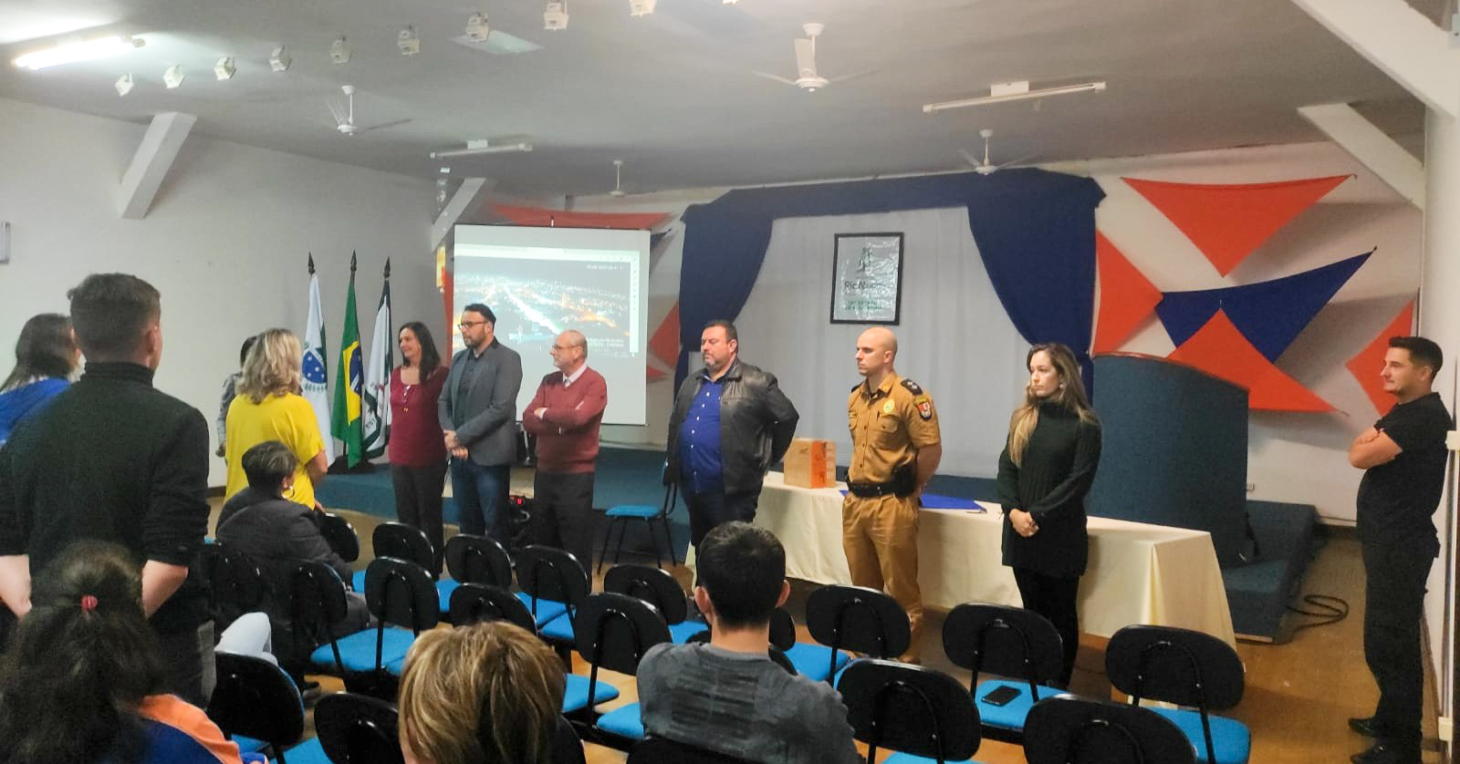 Durante a noite, a Secretaria de Educação, juntamente com a Polícia Militar e Patrulha Patrimonial, recepcionaram representantes das Associações de Pais e Professores das escolas e CMEIs rio-negrenses, demonstrando a todos como funciona o videomonitoramento 24 horas das unidades, plano de Brigada de Proteção Escolar, portão eletrônico e demais medidas de segurança.