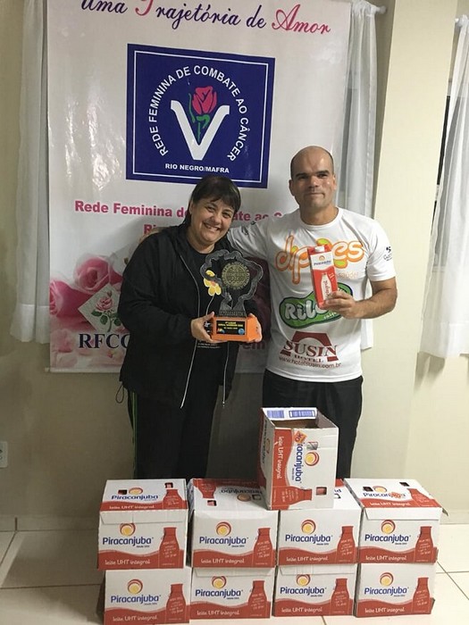 Antes de viajar para participar da ultramaratona, Sérgio entrou em contato com a Rede Feminina de Combate ao Câncer de Riomafra, onde fez um propósito com a presidente Katia: se chegasse entre os cinco primeiros colocados da prova, doaria para a Rede 105 caixas de leite integral. Como conseguiu cumprir o objetivo, o atleta realizou nesta semana a entrega na sede da Rede. “Mais uma vez a participação nesta prova e a doação dos leites só foram possíveis graças aos meus patrocinadores que me apoiam sem pedir nada em troca. Agradeço a Dipães Indústria de Pães, a Rilex Calçados, Susin Hotel, Dirmave Concessionária Volkswagen, Osteopata Kael Katzwinkel, Fisio Form Studio Pilates, Nutribrasil Suplementos Riomafra, Centrallar Climatização, Nutricionista Leticia Hacke, Oxy Academia, Massoterapeuta Adriana Silva, Ortopedia e Fisioterapia São Camilo, Portal Click Riomafra, Jornal Gazeta de Riomafra, a minha esposa Ledi e meu filho Sérgio, e um agradecimento especial ao Fisioterapeuta Gustavo Les e ao maratonista Julio Damasceno, essenciais nessa jornada de 105 Km”, comentou o atleta.