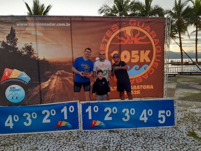 Sérgio conta como foi a competição: “A corrida foi muito difícil, pois a parte dos 80 km em estrada de chão estava bem irregular com muitas pedras soltas, buracos, subidas fortes e barro. Infelizmente não fui com as minhas melhores condições físicas. Não consegui treinar como deveria por causa de dores no quadril e coxa e acabei sentindo fortes dores a partir do km 52 da prova. Participei da prova na categoria “com apoio”, onde podia ser acompanhado por um carro de apoio, onde foram meus amigos Gustavo Les, fisioterapeuta, e Julio Damasceno, maratonista. Gustavo me acompanhou de bike aproximadamente 70 km do percurso, apoiando incondicionalmente com massagens, alimentação e hidratação durante a prova, e o Julio correu ao meu lado 20 km. Na parte mais crítica do dia, onde o sol estava forte e a vontade de abandonar a competição era grande, se não fosse meus amigos eu não teria conseguido completar a prova. Terminei a ultra no tempo de 13h00m56s, chegando em quarto lugar na classificação geral e em segundo lugar na categoria 35 a 39 anos. Meu próximo desafio será em novembro, onde o objetivo será correr 275 km em 48 horas na Ultramaratona Paraná 2019”.