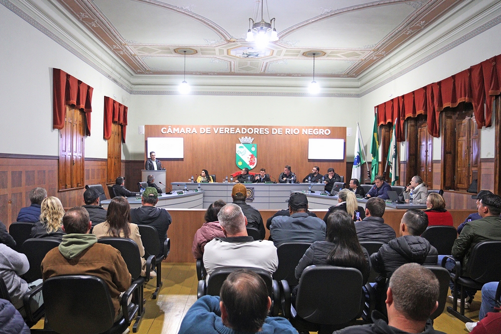 A Câmara Municipal de Rio Negro promoveu na noite desta quarta-feira (11) uma importante audiência pública voltada aos produtores de tabaco do municÃpio. O encontro, realizado no plenário da Casa Legislativa, contou com expressiva participação popular e lotou as dependências da Câmara, reunindo fumicultores, autoridades locais e estaduais, representantes de entidades e demais interessados no tema.