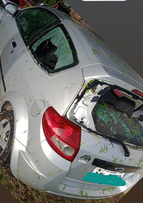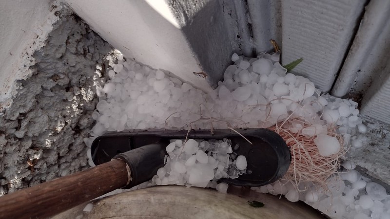 A foto de @kessini_arianee mostra os estragos causados pela chuva de granizo em Rio Negro.