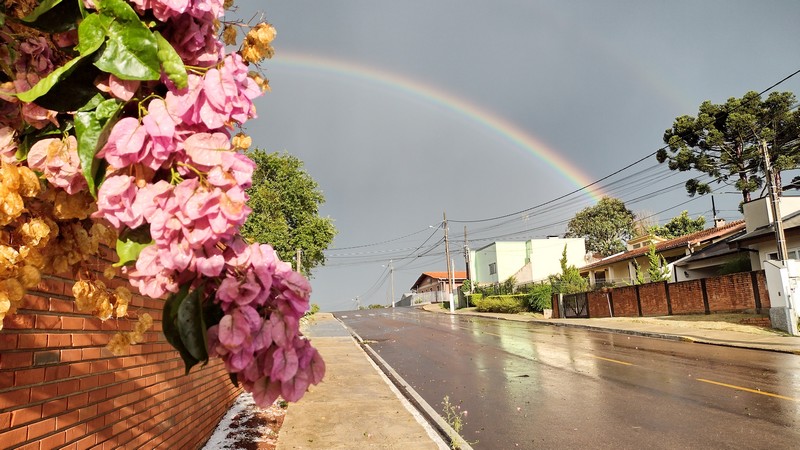 A chuva durou aproximadamente 30 minutos. Logo após um belo arco-íris se fez presente. A foto abaixo é de Ever Lisboa.