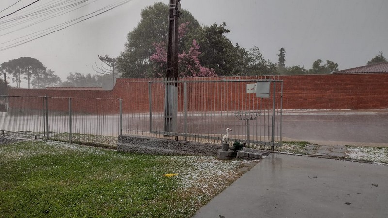 O calor e a umidade causaram uma intensa chuva de granizo em Rio Negro, Mafra e região na tarde desta quinta-feira (17).
