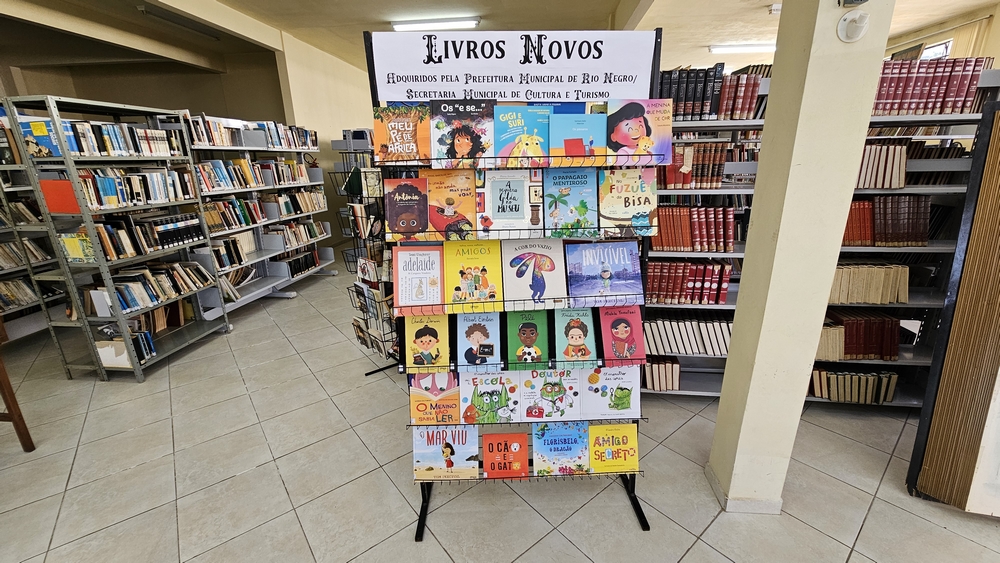 Recentemente a biblioteca pública recebeu novos livros infantis. São mais de 50 livros que já estão catalogados, expostos e disponíveis para empréstimo ou leitura na biblioteca.