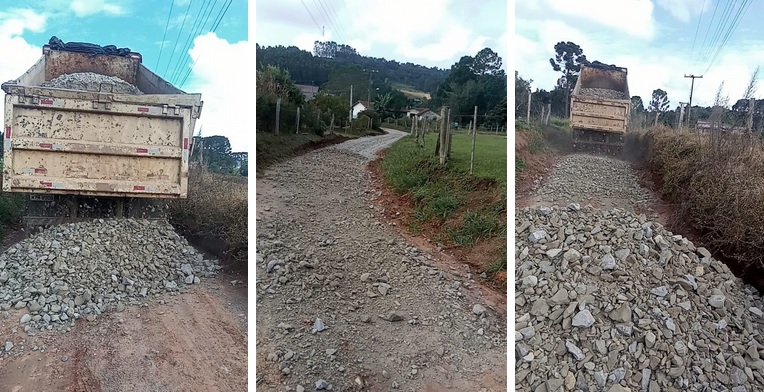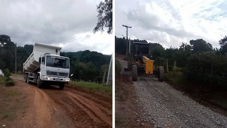 Apesar dos desafios impostos pelas condições climáticas, a Prefeitura de Mafra está concentrando esforços para melhorar as estradas rurais da localidade de Butiá do Lajeado.