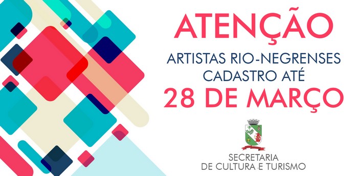 A prefeitura de Rio Negro, através da Secretaria de Cultura e Turismo, está atualizando o Cadastro de Agentes Culturais – artistas nas áreas de Música, Teatro, Dança, Grupos Folclóricos, Artes Visuais e Circo, que tenham interesse em realizar apresentações nos eventos culturais do município.