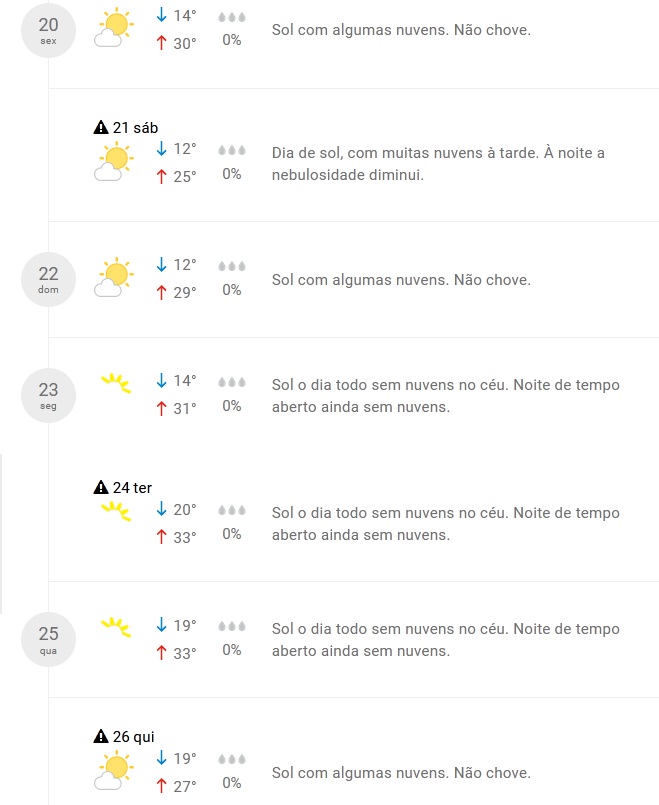 Em Riomafra o calor deve continuar nos próximos dias, de acordo com a Clima Tempo: