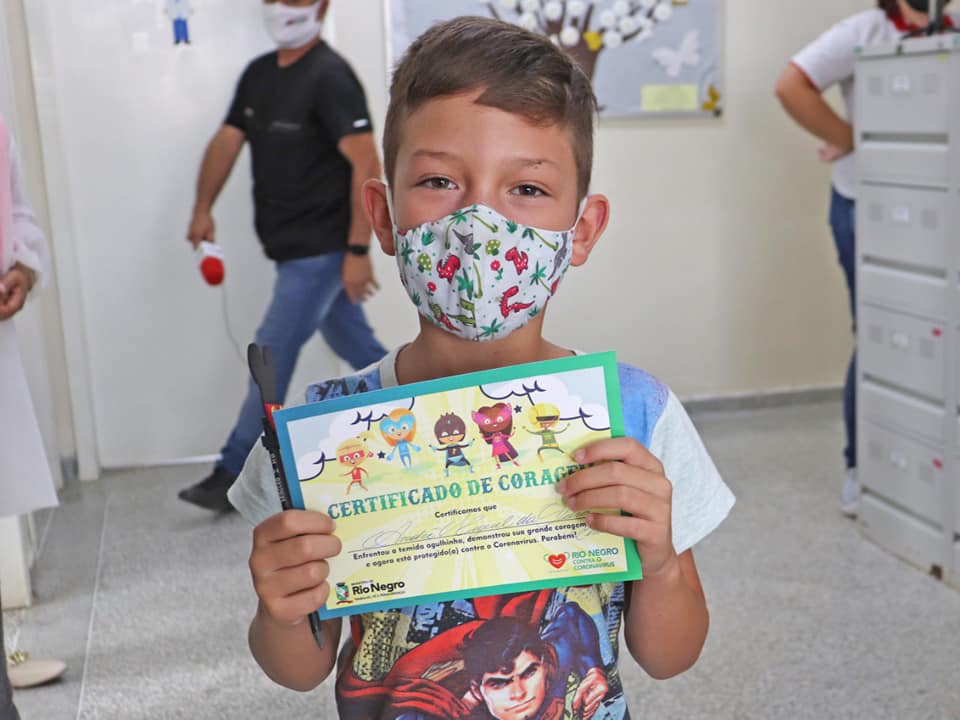 André da Silva Mendes, 08 anos de idade, foi o grande corajoso que iniciou a campanha no município recebendo sua vacina no braço. Não chorou, e agora sua valentia fica eternizada na história do município, que trabalha diariamente para que a vacinação atinja o maior número possível de pessoas. Além de André, outras 21 crianças previamente agendadas também receberam sua dose do imunizante. Para festejar o momento, todos ganharam certificados de coragem, lápis personalizados e curativos de super heróis.