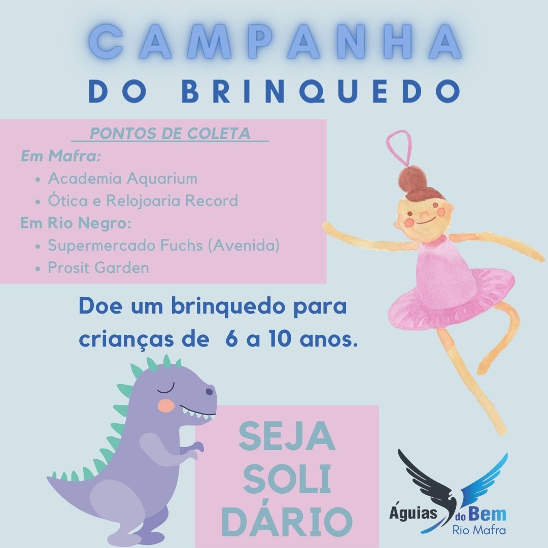 Seja solidário. Doe um brinquedo para crianças de 6 a 10 anos de idade. Confira na imagem os locais de coleta.