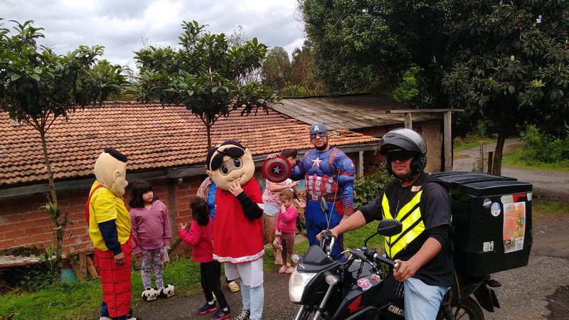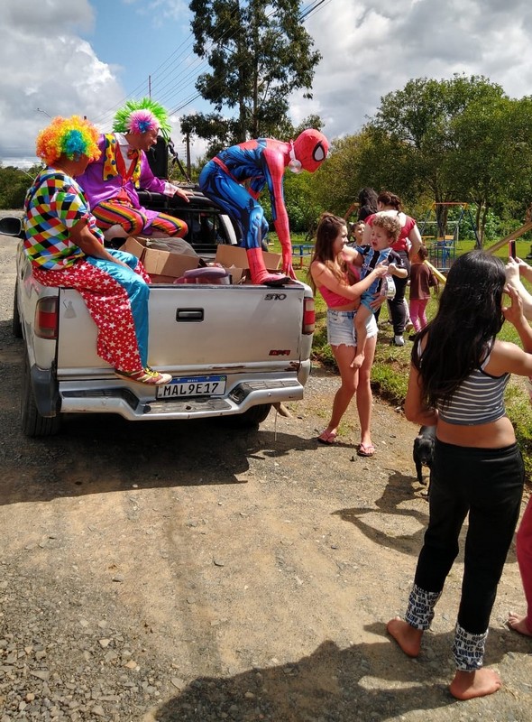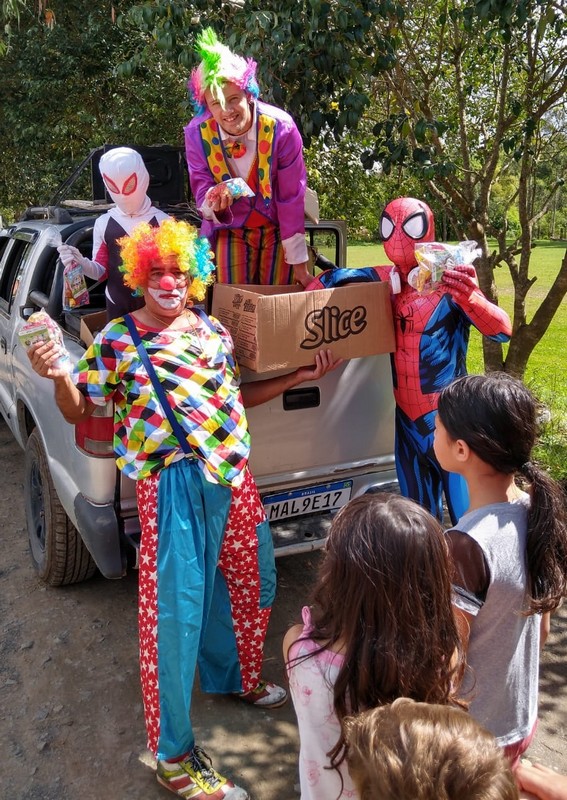 Além dos voluntários presentes na Caravana da Alegria, as crianças ainda puderam tirar fotos a vontade com a presença da trupe de palhaços, super-heróis e personagens que compõem o Circo Social.