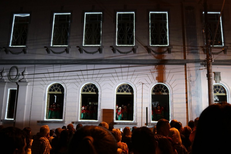 Na noite desta quarta-feira (04), as apresentações do CMEI Agostinho Paizani Filho, da Escola Municipal Olavo Bilac e da cantora Kelly Lukasinski, emocionaram o público que prestigiou o primeiro dia de Cantata Natalina nas janelas do antigo Fórum de Justiça. Na próxima quarta-feira, 11 de dezembro, o Coral Resgate fará sua apresentação a partir das 20h. Participe! Confira as fotos divulgadas pela Secretaria de Cultura de Rio Negro.