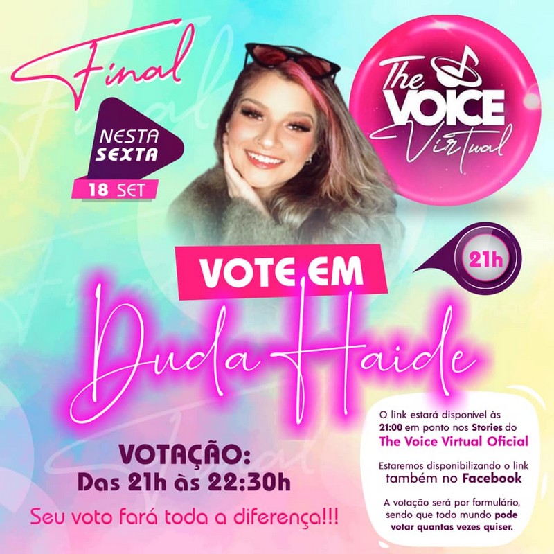 A talentosa cantora riomafrense Duda Haide (@DudaHaide) está na final do concurso The Voice Virtual.