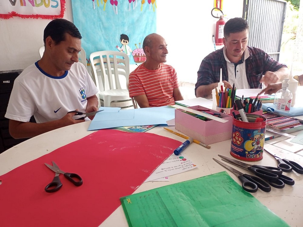 Durante a realização das atividades em grupo, os usuários do CAPS Rio Negro também estão desenvolvendo oficinas de Páscoa, confeccionando lembrancinhas e artesanatos alusivos a data.