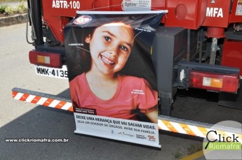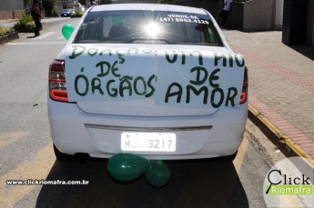 Vários carros com faixas contendo mensagens participaram do ato. As personagens do projeto Circo Social também marcaram presença no evento e atraíram a atenção das pessoas, principalmente das crianças. O projeto atua de forma voluntária em Riomafra e participa de ações desta magnitude para colaborar com a divulgação e conscientização do público para atos solidários, como este da doação de órgãos.
