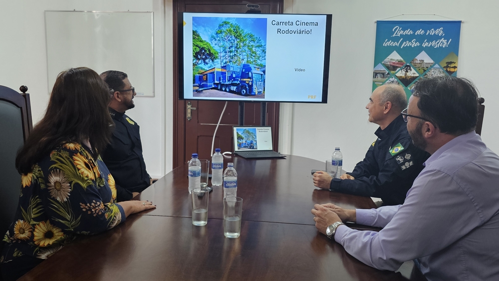 O prefeito Alessandro Cristian von Linsingen, juntamente com a secretária municipal de educação, Vera Maria Pfeffer Schelbauer, recebeu nesta quarta-feira em seu gabinete o chefe da delegacia da PolÃcia Rodoviária Federal (PRF) de Mafra, Ronaldo Paiva de Oliveira, e o chefe substituto da delegacia, Marcos Santos, que apresentaram o projeto Carreta Cinema Rodoviário.