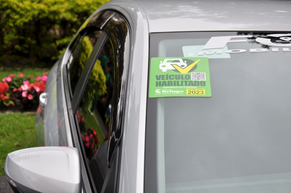Carros de aplicativos licenciados em Rio Negro estão identificados com selo no para-brisa