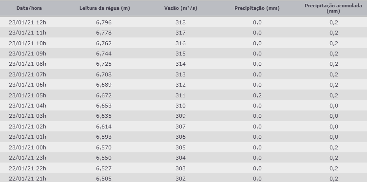No último sábado 16, antes do início das chuvas, às 9h, o rio Negro media 1,238m, com uma vazão de 46,2m³/s e a na tarde de ontem às 16h o rio Negro media 6,359m, com uma vazão de 294m³/s, ou seja desde o início das chuvas o nível do rio Negro, aumentou 5,121m, segundo os dados do site da Copel.