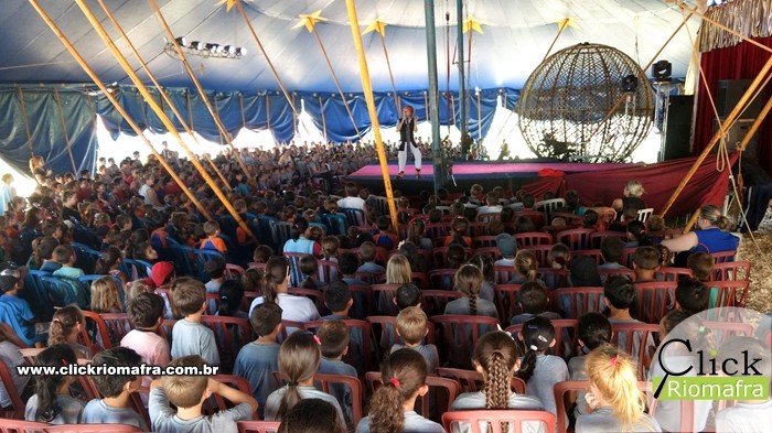 Com o objetivo de enfatizar o Dia do Circo – que é celebrado no dia 27 de março – e aproximar as crianças desta cultura milenar, o Circo Romanos recebeu nesta semana alunos de todas as escolas municipais de Rio Negro. Com a parceria realizada com a prefeitura, o circo proporcionou às crianças muitas atrações sem nenhum custo para elas. Os alunos se divertiram com as apresentações tradicionais e também com os shows infantis que o circo apresenta.