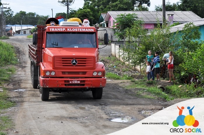Na sexta-feira (23), o Circo Social também apoiou o grupo FamÃlia Muriçoca durante a sua carreata de Natal. A saÃda ocorreu no bairro Alto, em Rio Negro. Em seguida os carros passaram por diversos bairros com a presença especial do Papai Noel e da Galinha Pintadinha. Balas foram distribuÃdas para as crianças durante todo o trajeto.