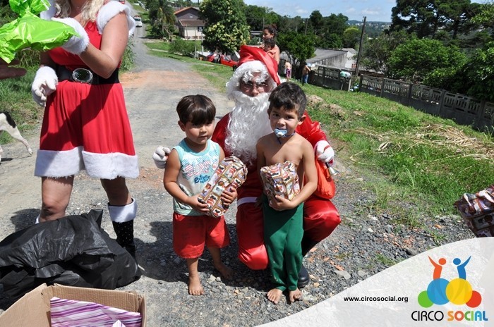 No dia 24, véspera de Natal, os voluntários do Circo Social dedicaram o dia para realizar a entrega de presentes para crianças de diversas comunidades de Rio Negro e Mafra. Os brinquedos foram arrecadados durante todo o mês de dezembro em diversos estabelecimentos das cidades. E todos foram embrulhados para tornar o momento da entrega ainda mais especial para as crianças com a presença do Papai Noel, além de diversas personagens infantis.