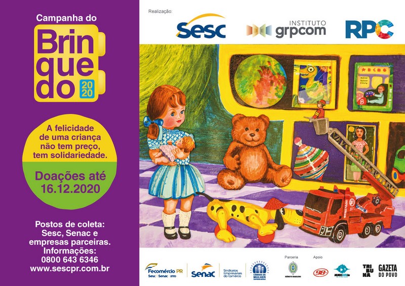 Não haverá necessidade de embrulhar as doações. Basta traze-los em sacolas plásticas, pois todo material arrecadado ficará em quarentena de 7 dias e posteriormente será separado de acordo com a faixa etária e destinado a uma instituição local que atenda o público infantil. O Sesc Paraná e as empresas parcerias contam com sua solidariedade.