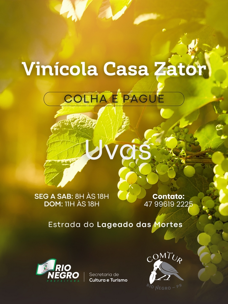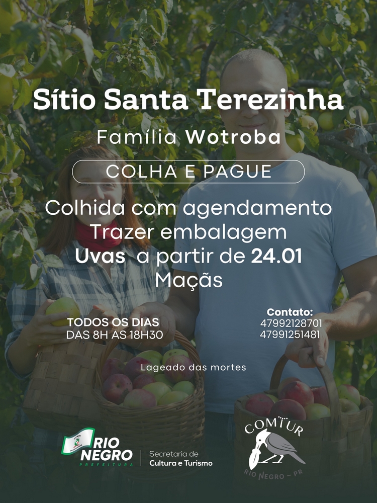 Com o objetivo de valorizar o trabalho dos produtores rurais e fortalecer o turismo e a economia, a Secretaria Municipal de Cultura e Turismo e o Conselho Municipal de Turismo (Comtur) de Rio Negro convidam a população local e da região para conhecerem as propriedades que oferecem serviços e produtos que encantam turistas de todo o Brasil.