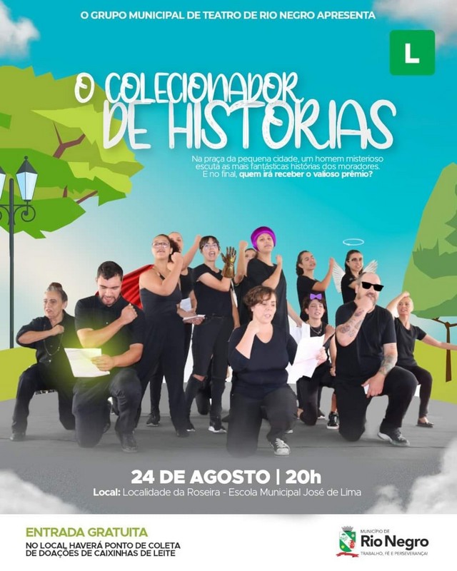 Nesta quarta-feira (24), às 20h, acontece a exibição do espetáculo “O Colecionador de Histórias”, do Grupo Municipal de Teatro na comunidade da Roseira. O evento será realizado na Escola Municipal José de Lima com entrada é gratuita. Classificação Livre.