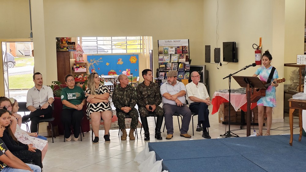 A talentosa musicista Gabriela Heide encantou a todos com uma bela canção na abertura do evento. Estiveram presentes as crianças premiadas, seus pais e responsáveis e diretores de unidades escolares. Entre as autoridades estiveram presentes o prefeito James Karson Valério, secretários municipais, coordenadores da área cultural, o comandante do 5º RCC, tenente-coronel André Rolim da Silva, e o gerente do Sesc Rio Negro, Henrique Gaio.