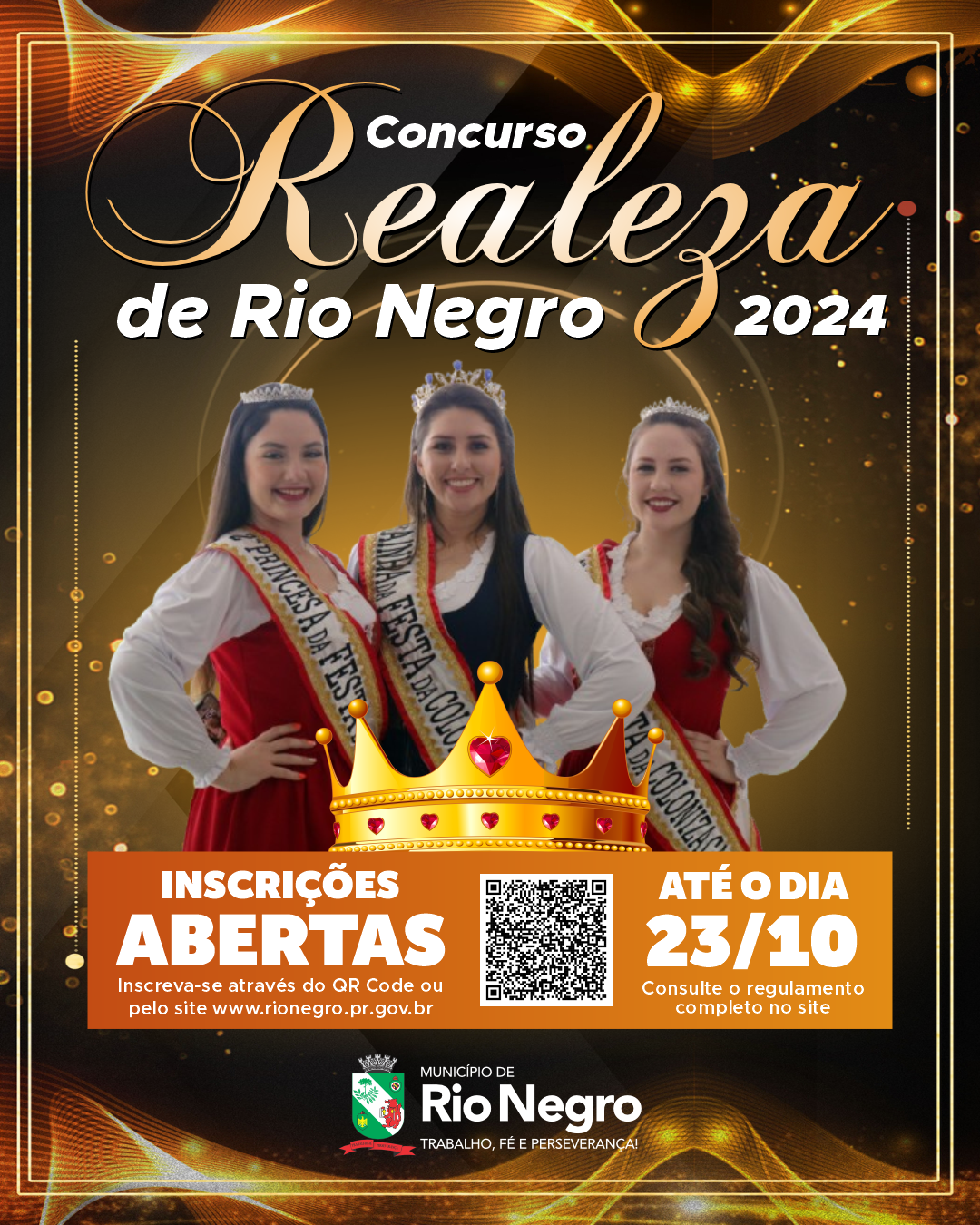 O Concurso Realeza de Rio Negro 2024 está com inscrições abertas. Até o dia 23 de outubro as interessadas a partir de 16 anos de idade podem se inscrever pela Internet.
