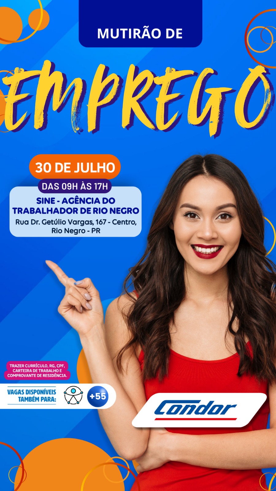 A empresa iniciou o processo de recrutamento e seleção de colaboradores. O novo mutirão de empregos será realizado no dia 30 de julho, das 9h às 17h, na Agência do Trabalhador (SINE) de Rio Negro.