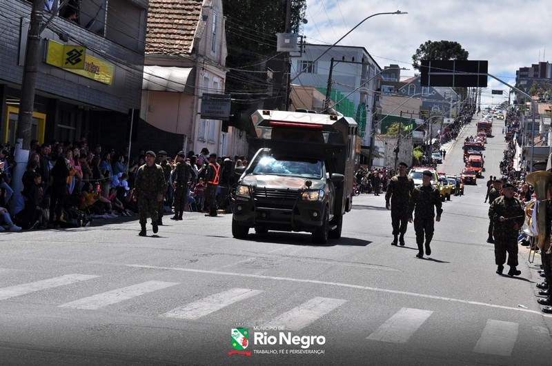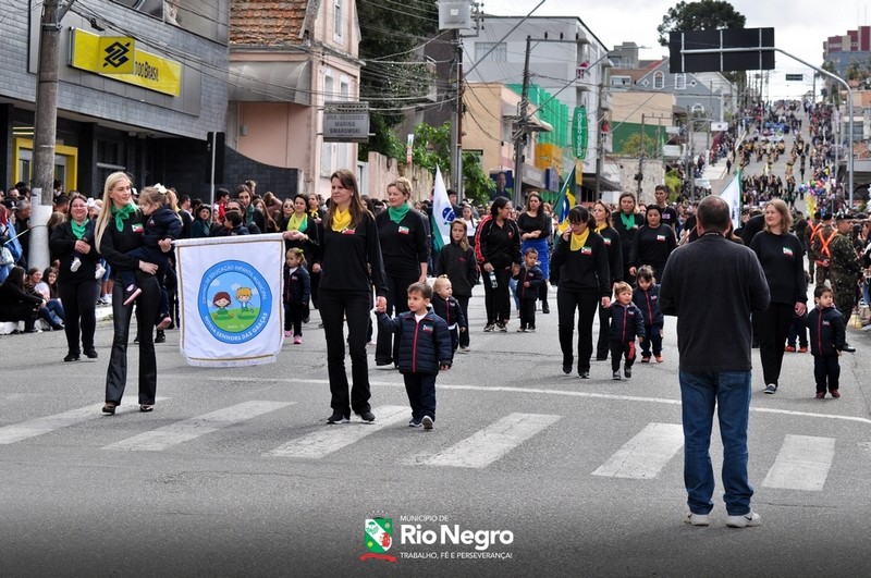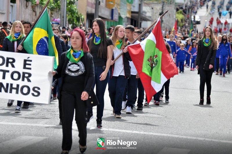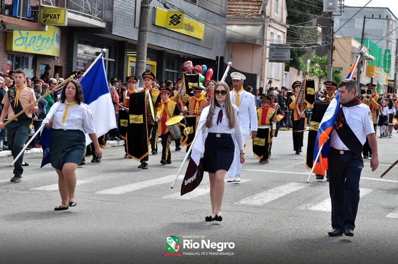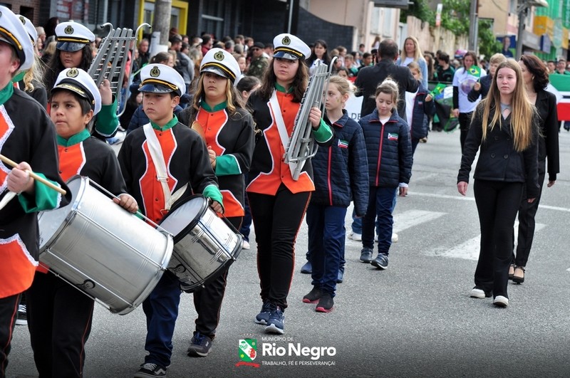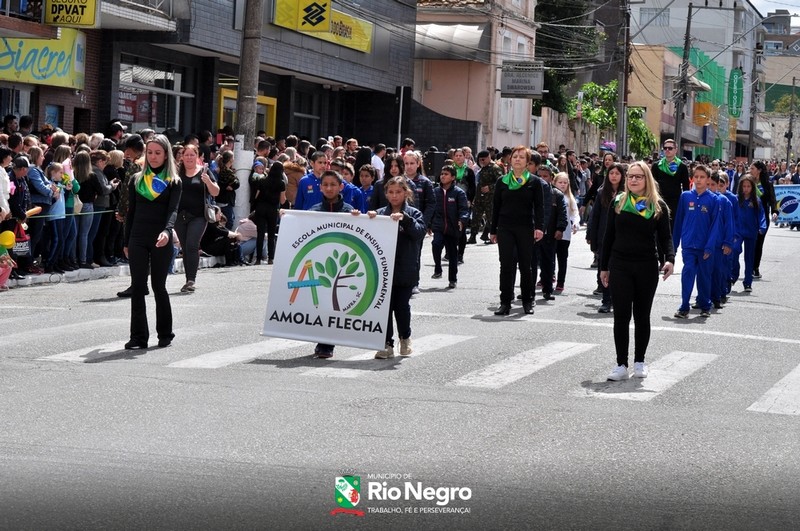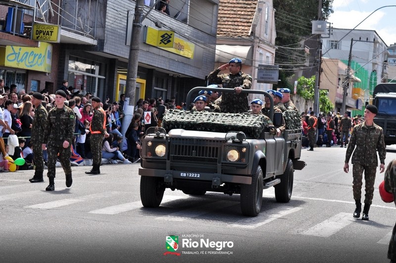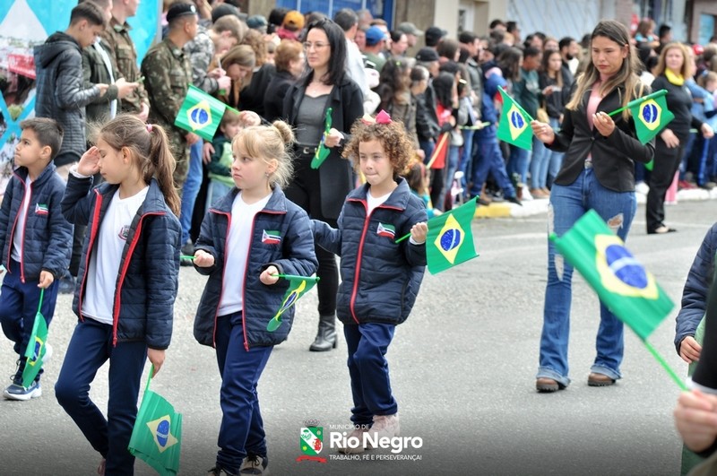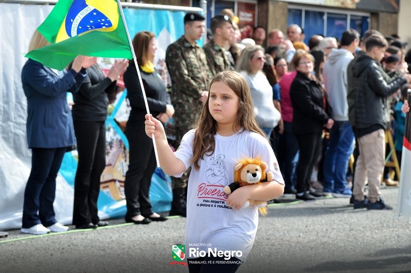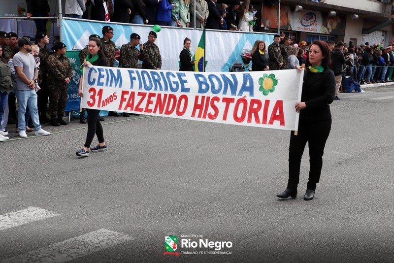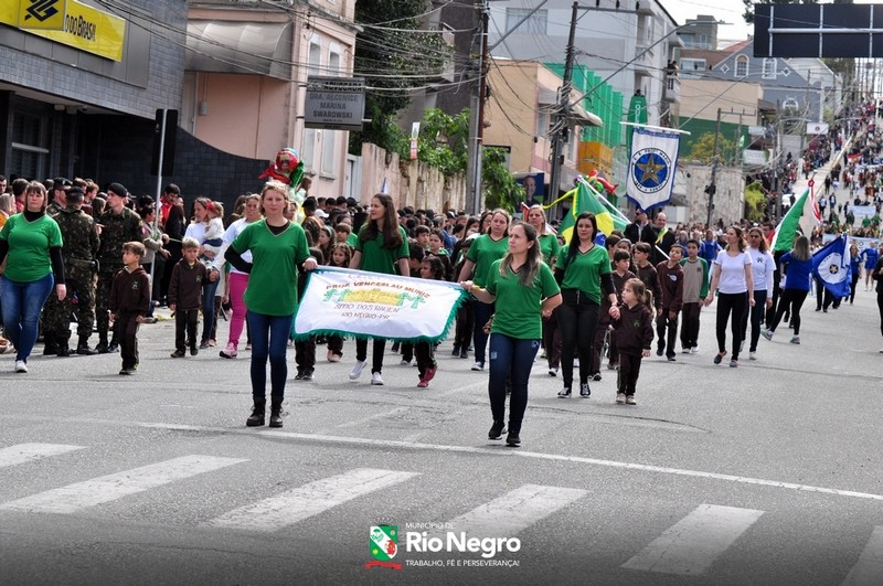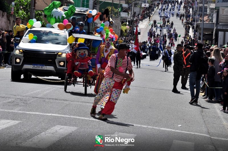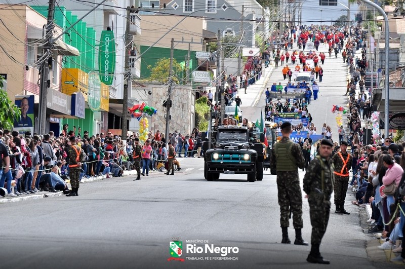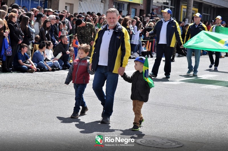 O desfile ocorreu na Rua Dr. Vicente Machado, em Rio Negro, com a participação de diversas escolas e entidades, inclusive de outros municÃpios da região. O evento foi organizado pela Prefeitura de Rio Negro, através da Secretaria Municipal de Educação e com o importante apoio do 5º Regimento de Carros de Combate.