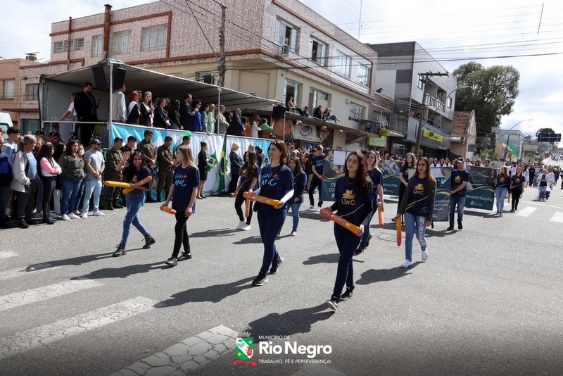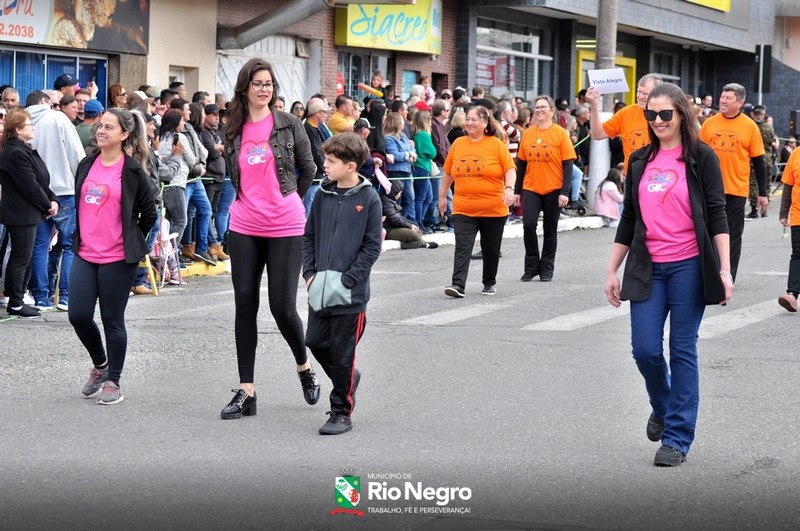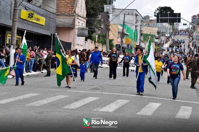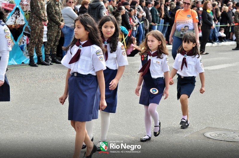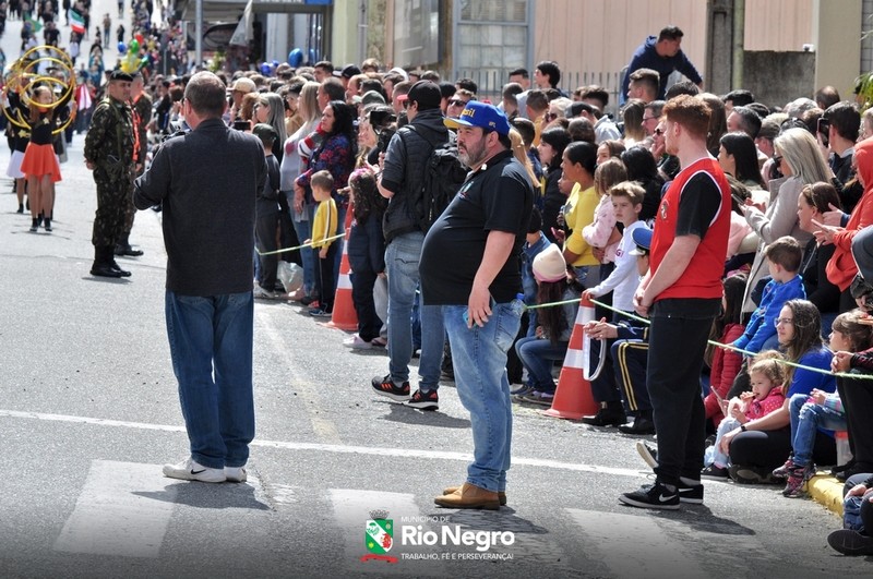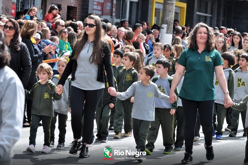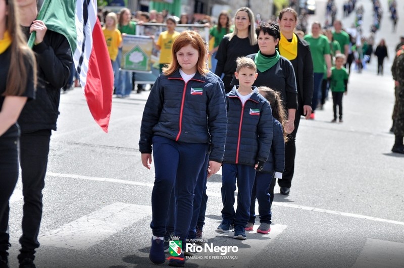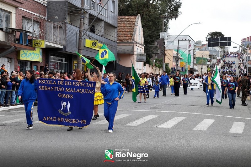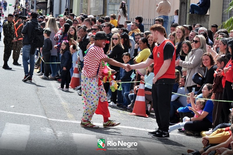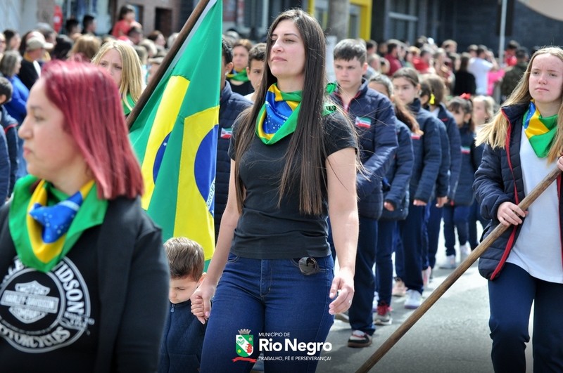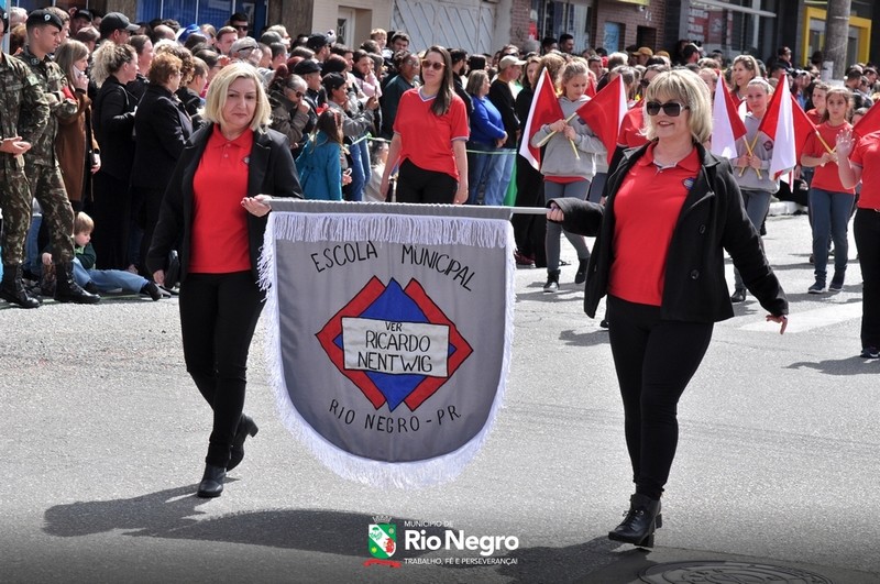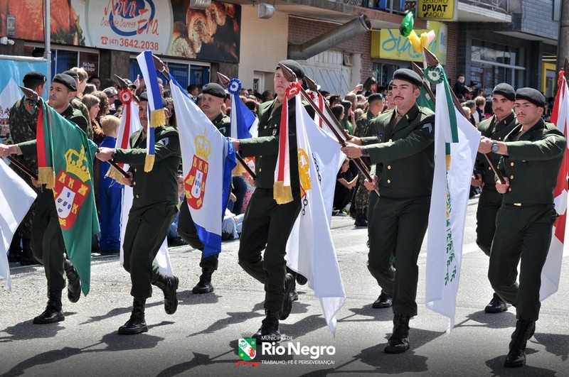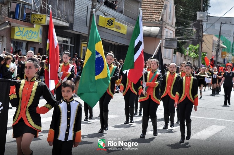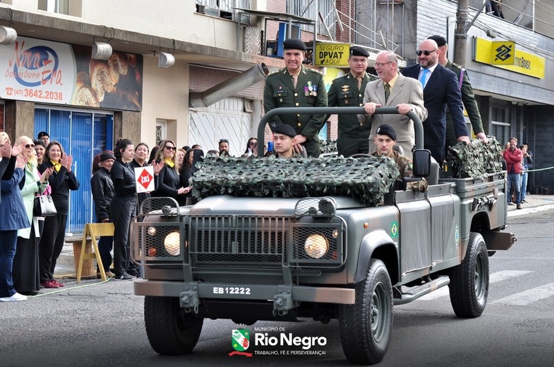 O desfile ocorreu na Rua Dr. Vicente Machado, em Rio Negro, com a participação de diversas escolas e entidades, inclusive de outros municÃpios da região. O evento foi organizado pela Prefeitura de Rio Negro, através da Secretaria Municipal de Educação e com o importante apoio do 5º Regimento de Carros de Combate.