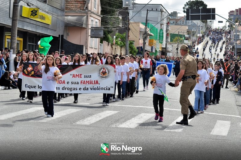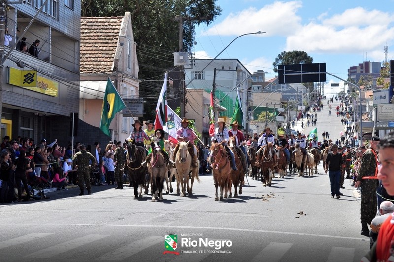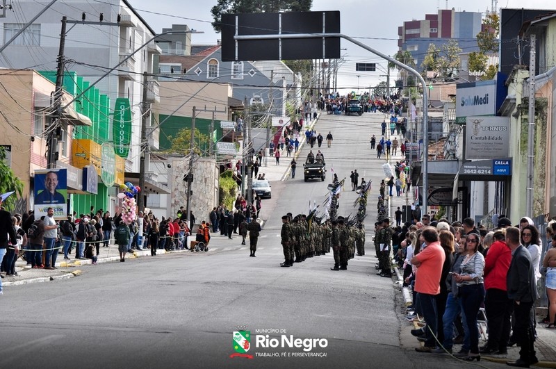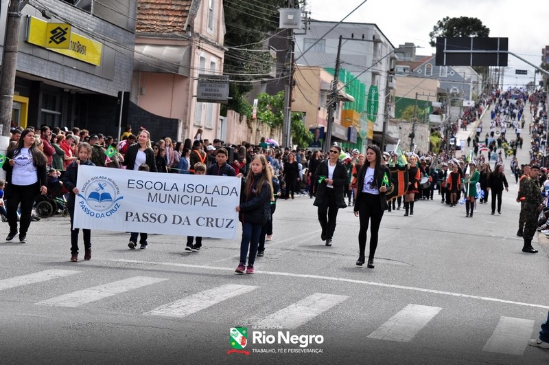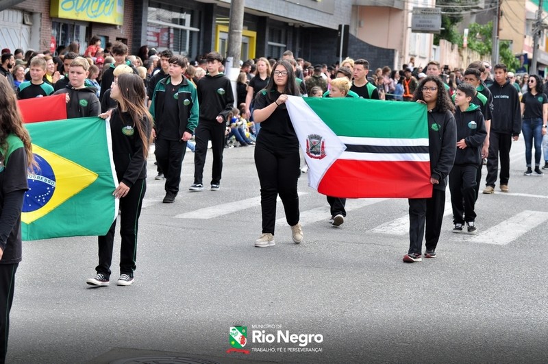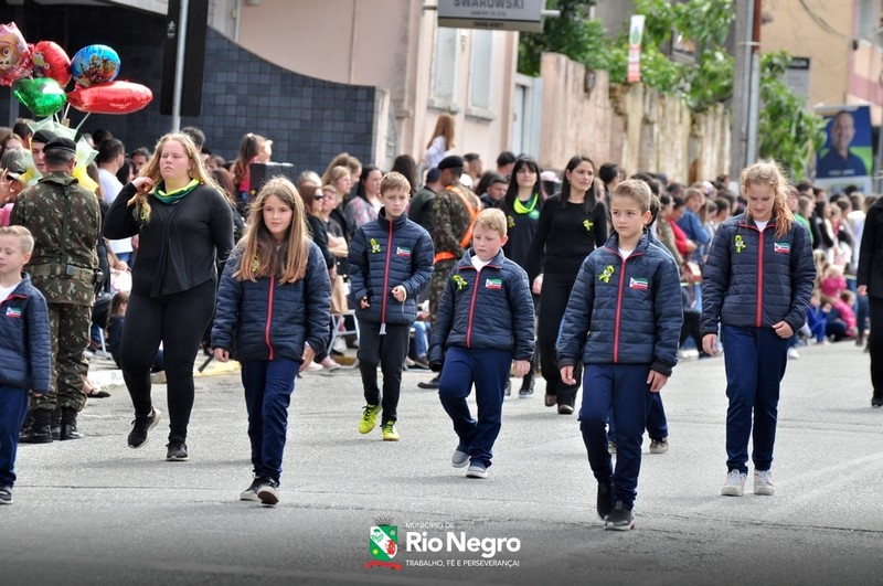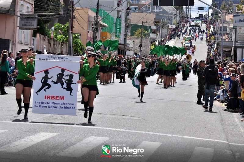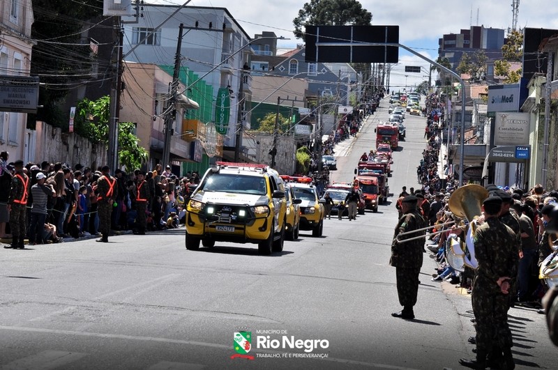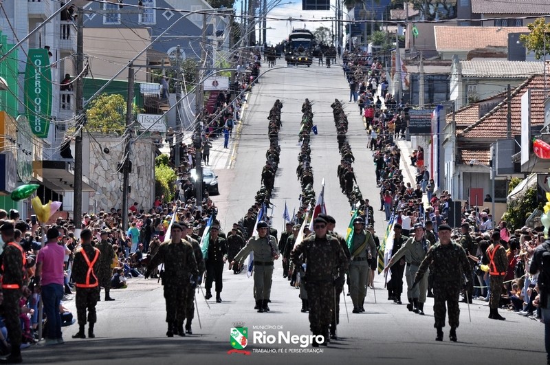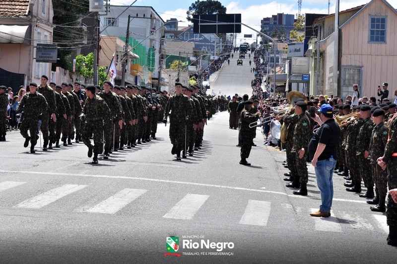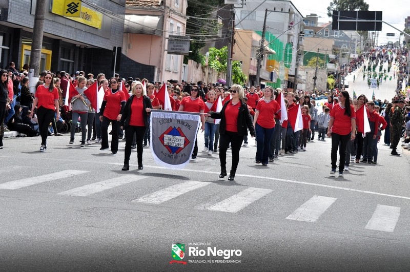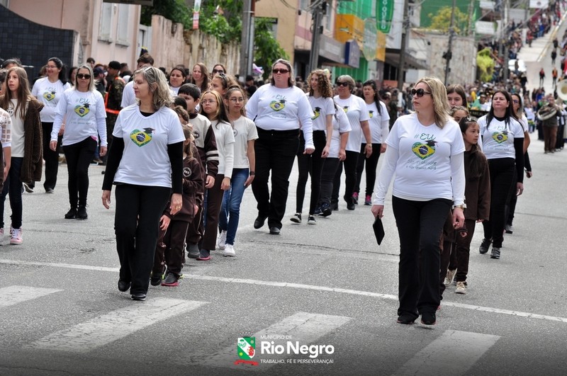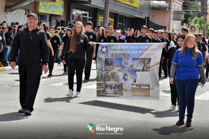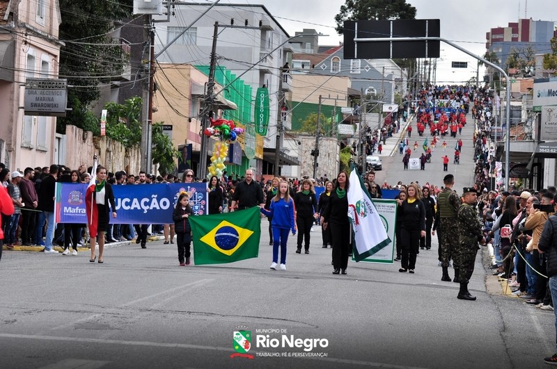 O desfile ocorreu na Rua Dr. Vicente Machado, em Rio Negro, com a participação de diversas escolas e entidades, inclusive de outros municÃpios da região. O evento foi organizado pela Prefeitura de Rio Negro, através da Secretaria Municipal de Educação e com o importante apoio do 5º Regimento de Carros de Combate.
