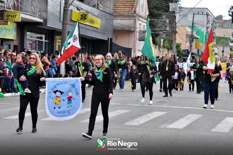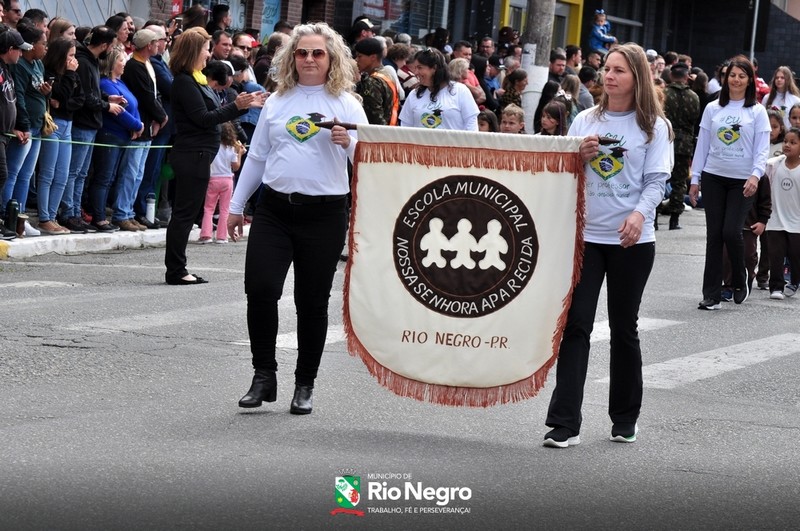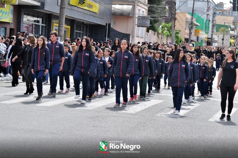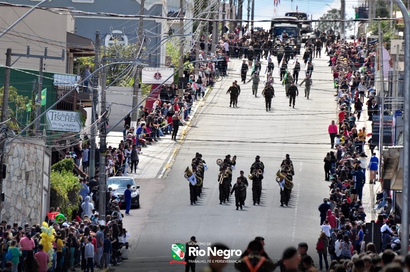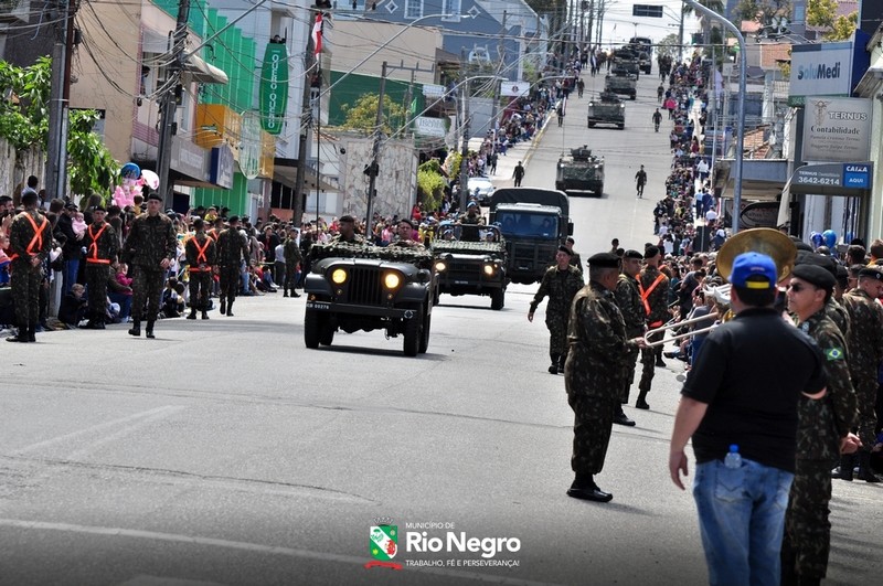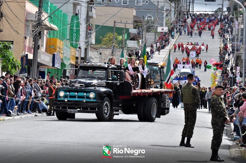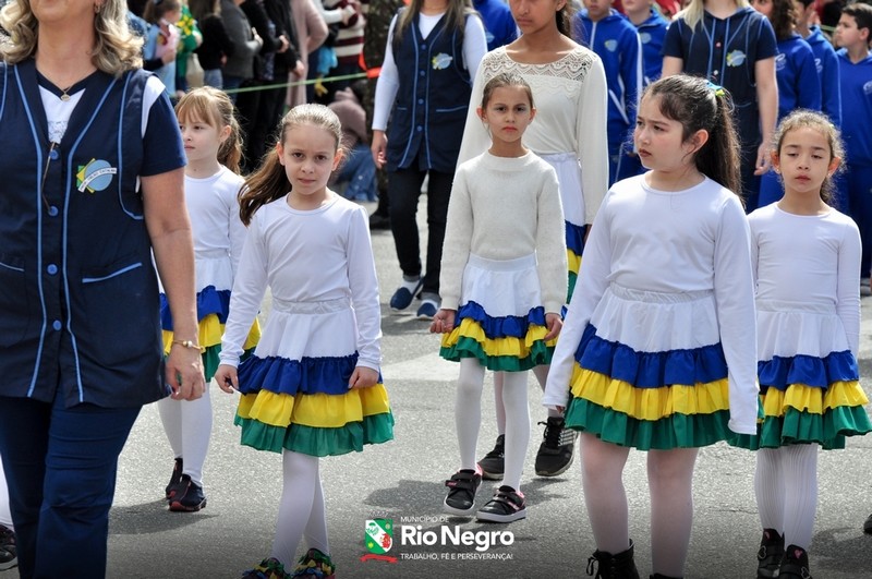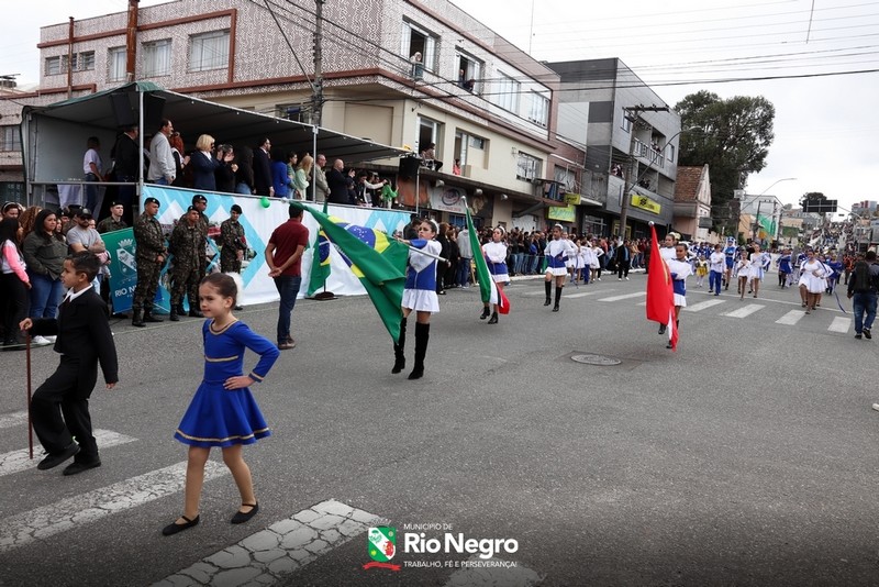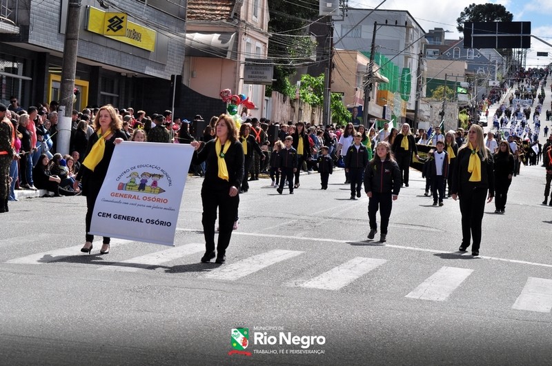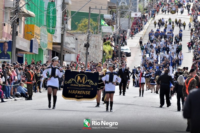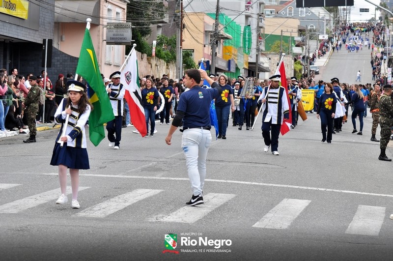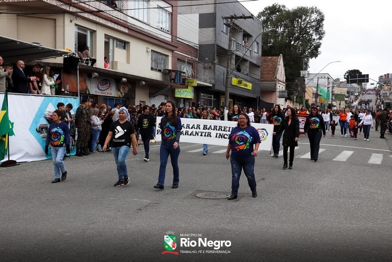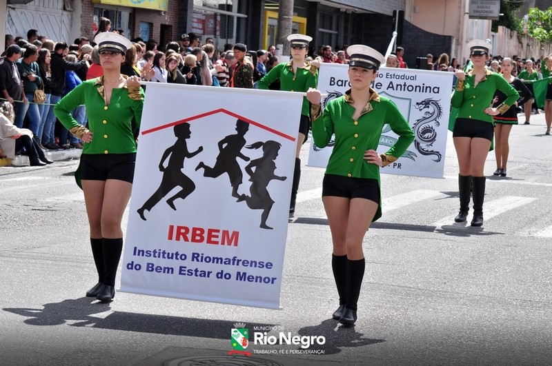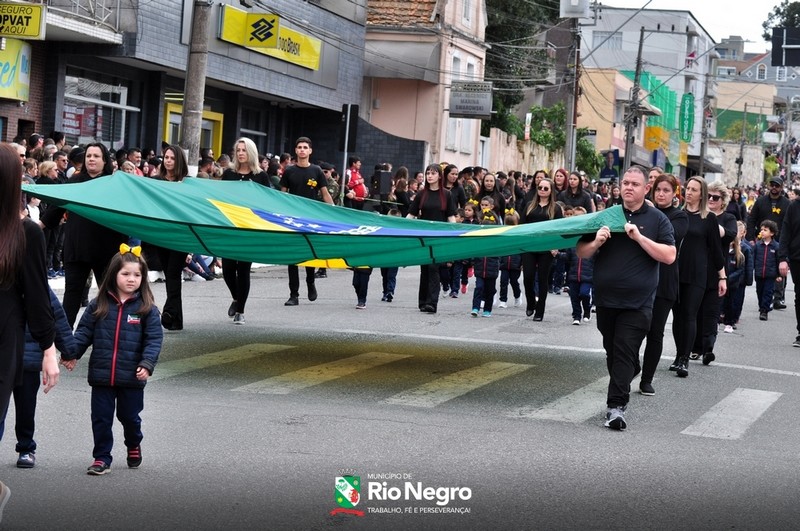 O desfile ocorreu na Rua Dr. Vicente Machado, em Rio Negro, com a participação de diversas escolas e entidades, inclusive de outros municÃpios da região. O evento foi organizado pela Prefeitura de Rio Negro, através da Secretaria Municipal de Educação e com o importante apoio do 5º Regimento de Carros de Combate.