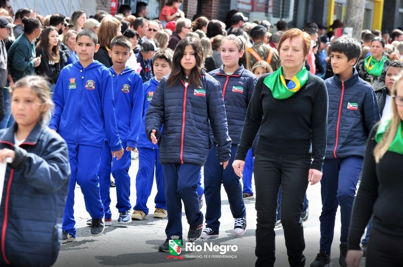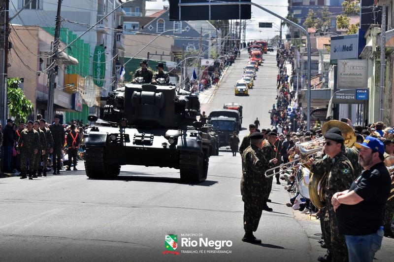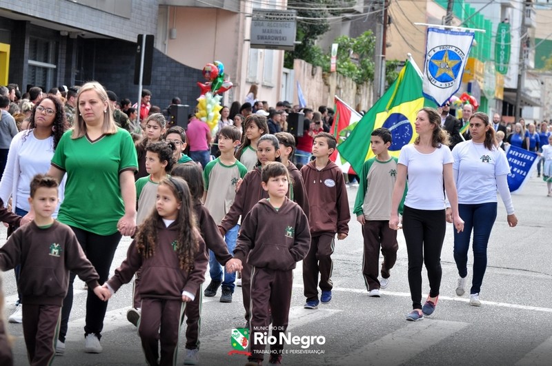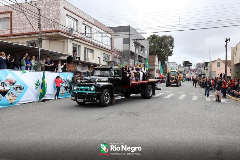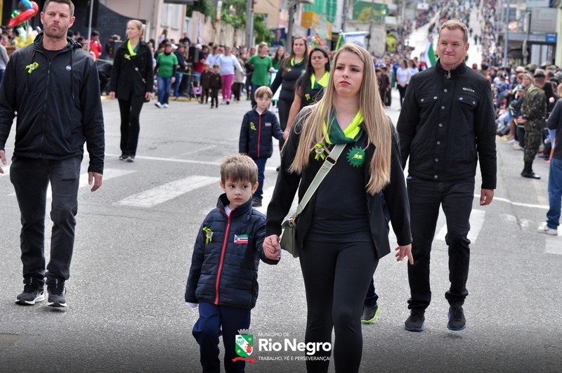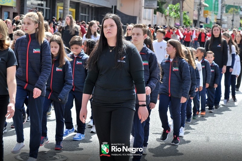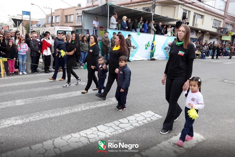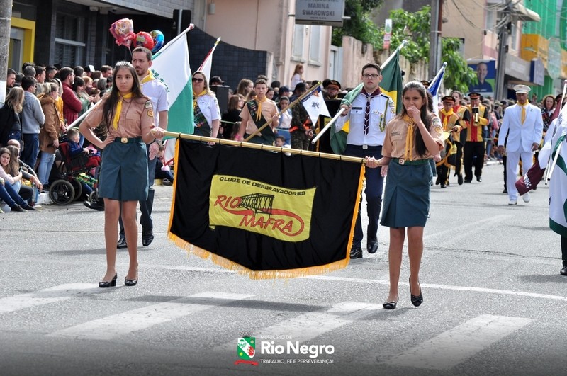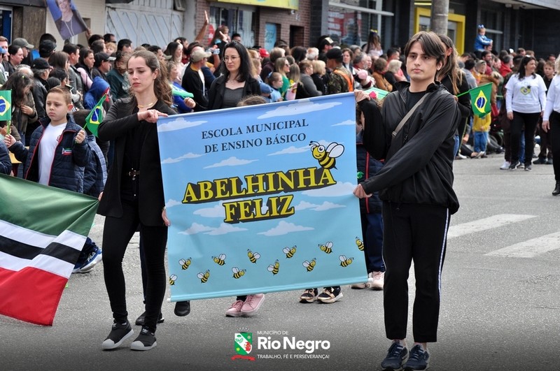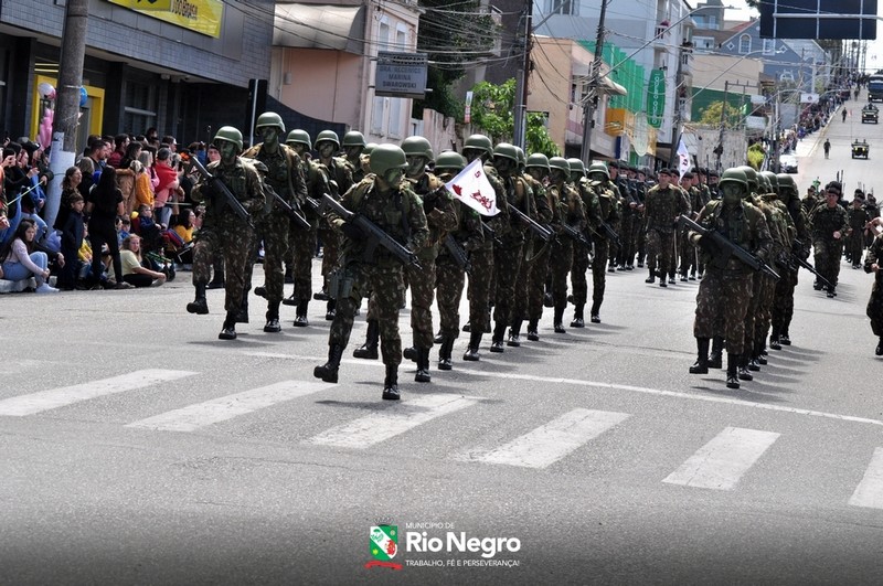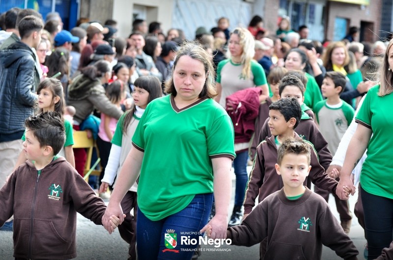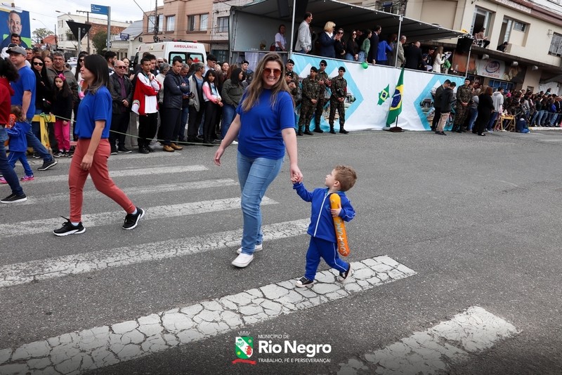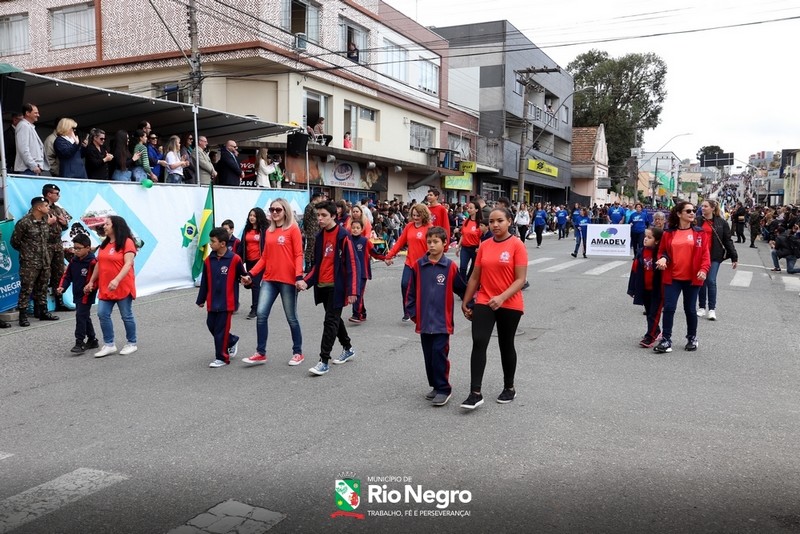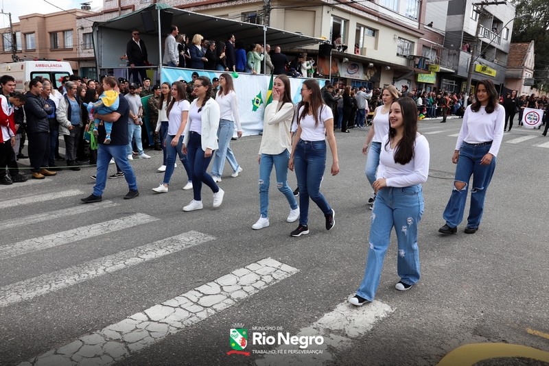 O desfile ocorreu na Rua Dr. Vicente Machado, em Rio Negro, com a participação de diversas escolas e entidades, inclusive de outros municÃpios da região. O evento foi organizado pela Prefeitura de Rio Negro, através da Secretaria Municipal de Educação e com o importante apoio do 5º Regimento de Carros de Combate.