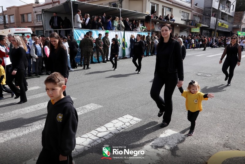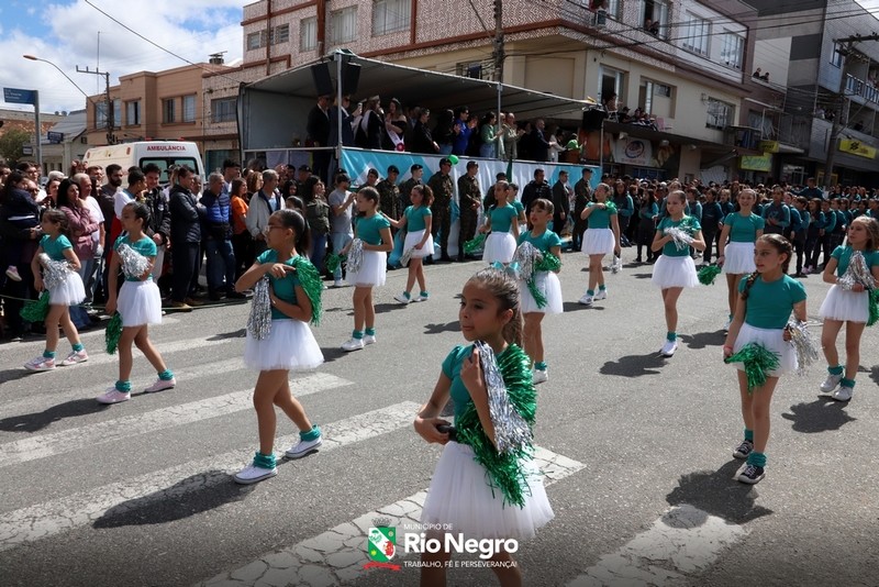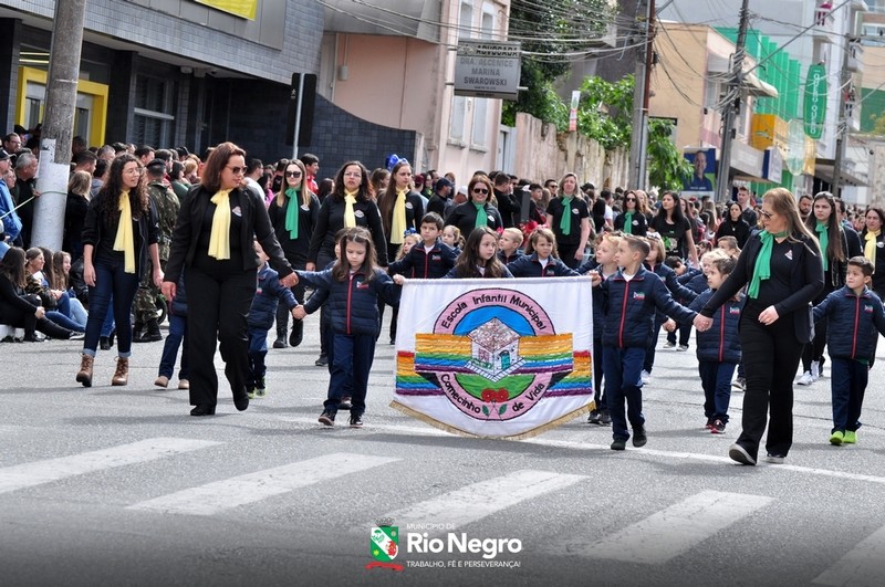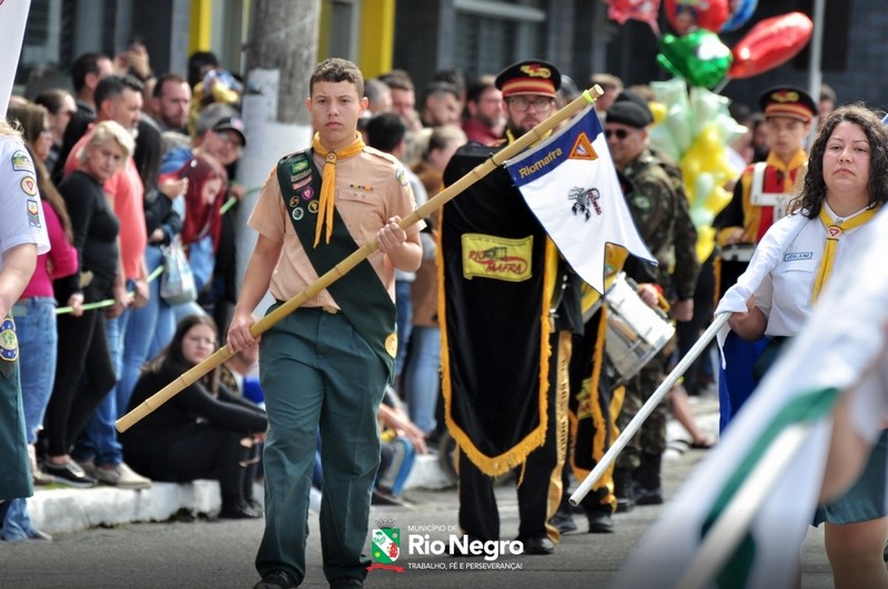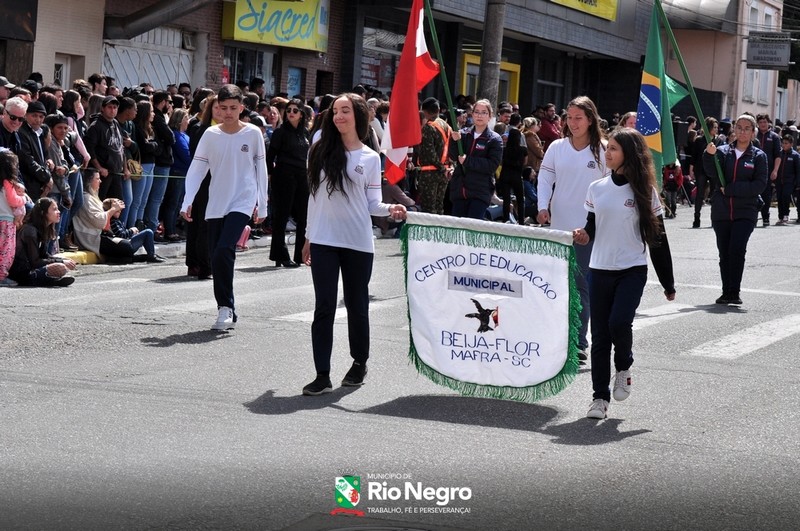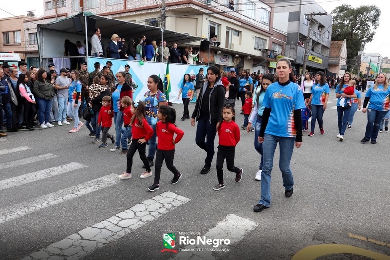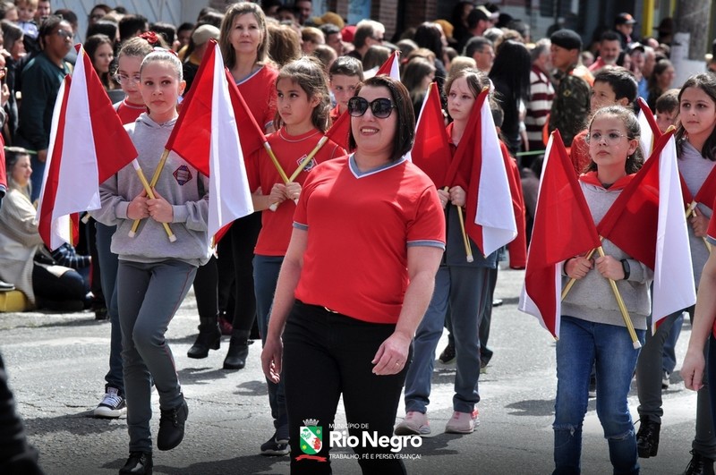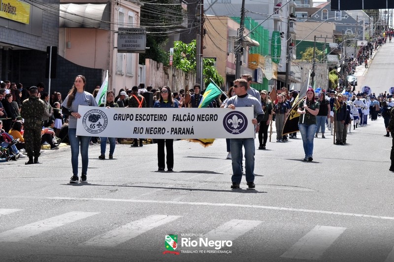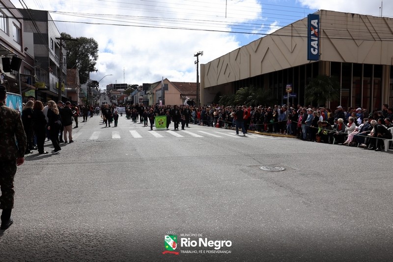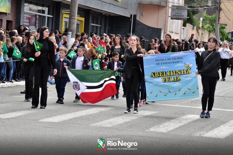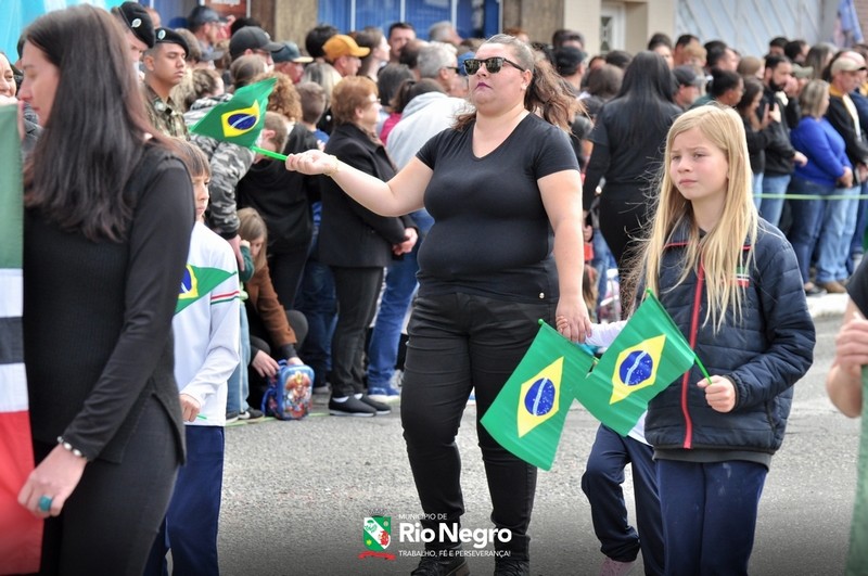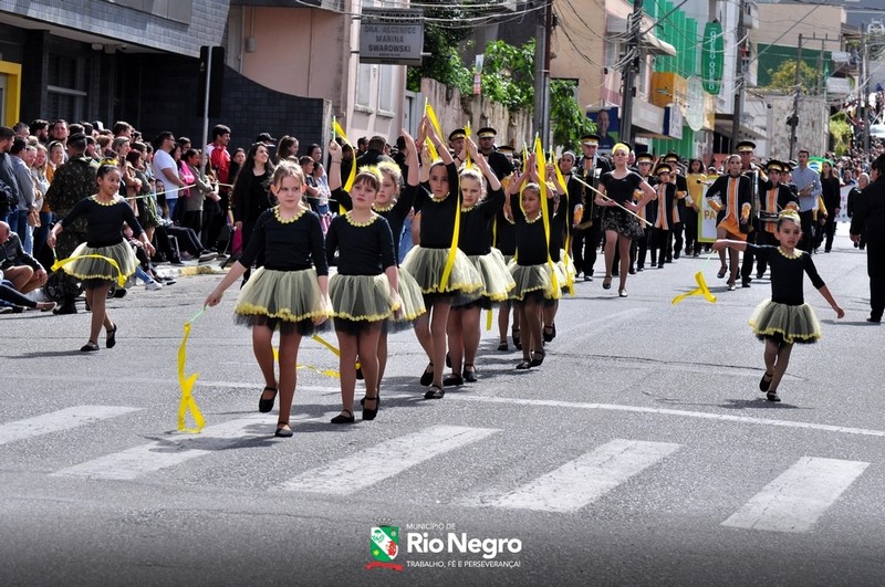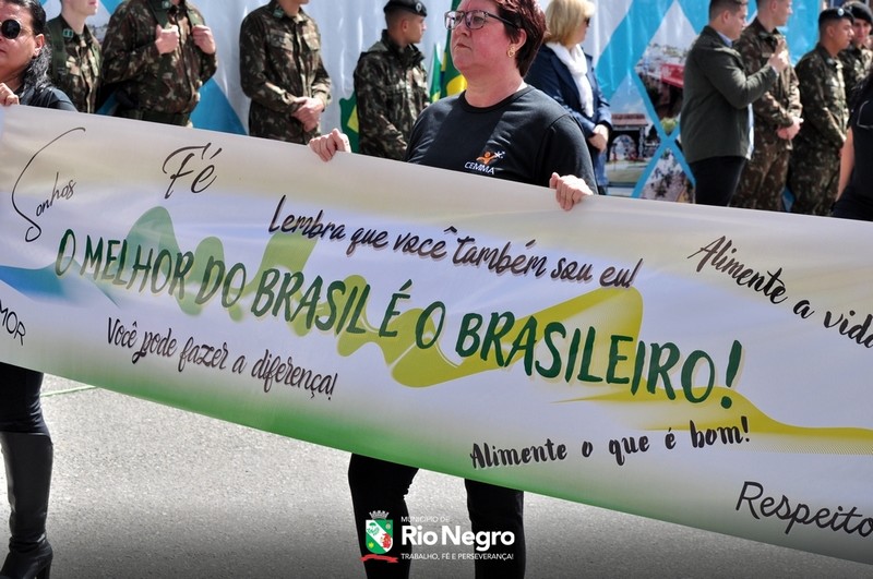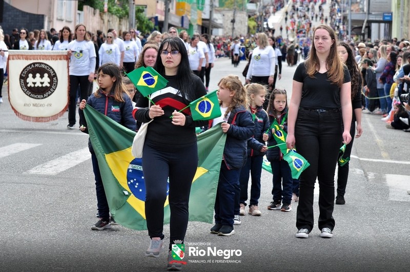 O desfile ocorreu na Rua Dr. Vicente Machado, em Rio Negro, com a participação de diversas escolas e entidades, inclusive de outros municÃpios da região. O evento foi organizado pela Prefeitura de Rio Negro, através da Secretaria Municipal de Educação e com o importante apoio do 5º Regimento de Carros de Combate.